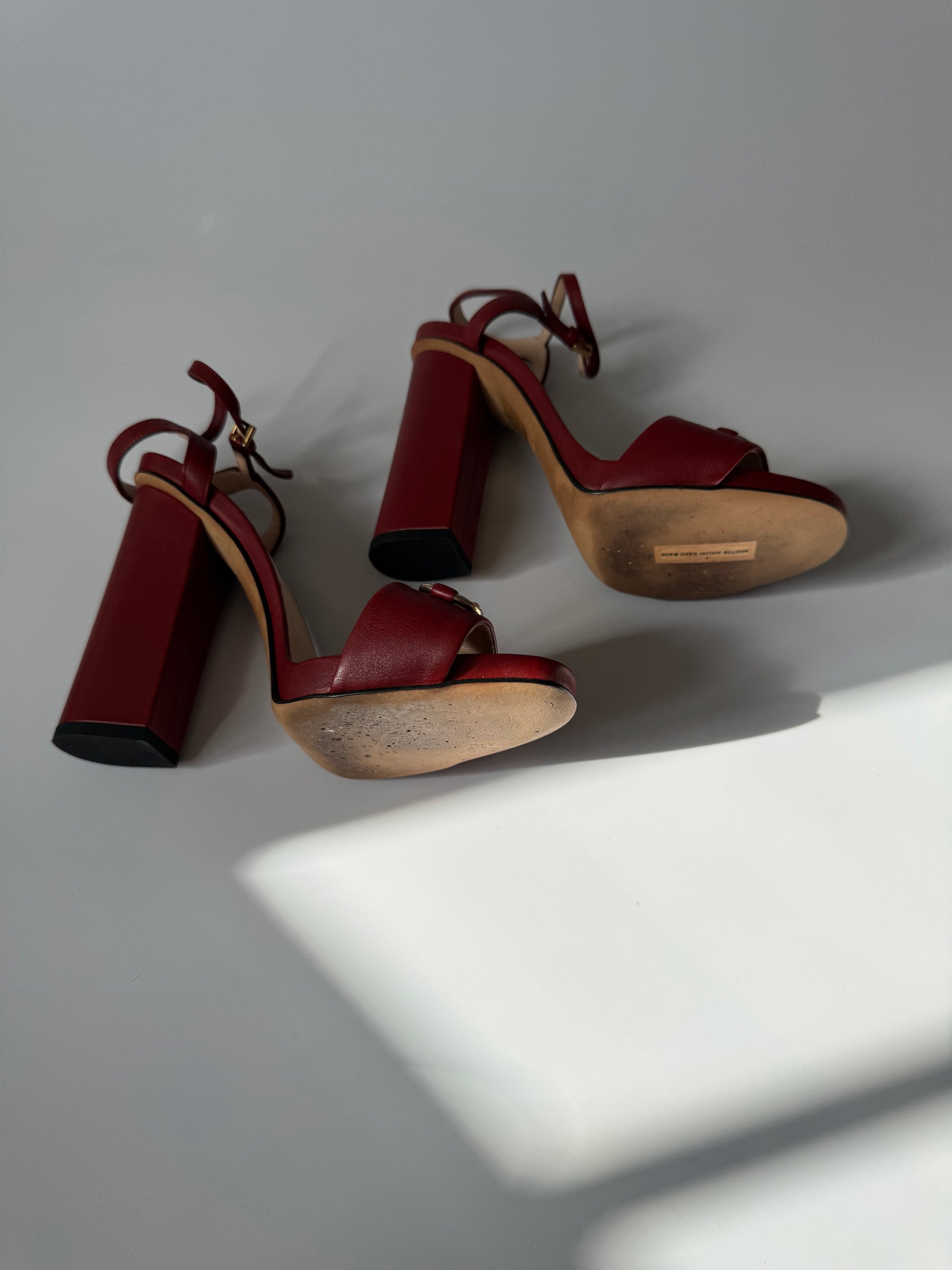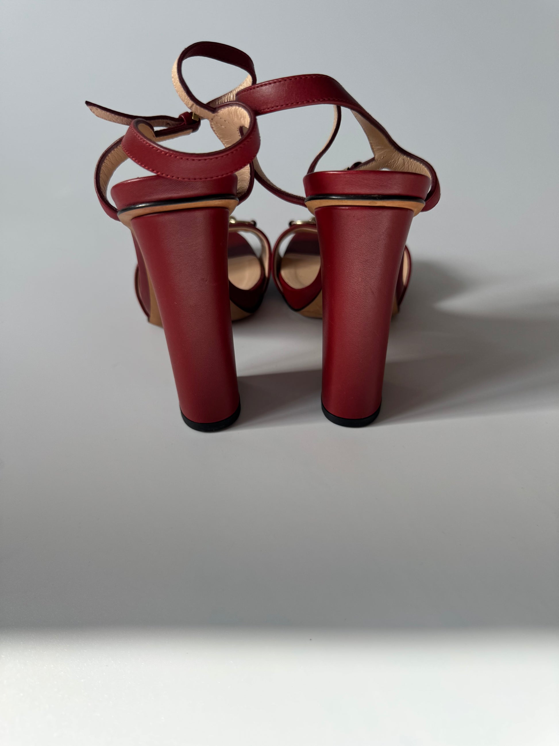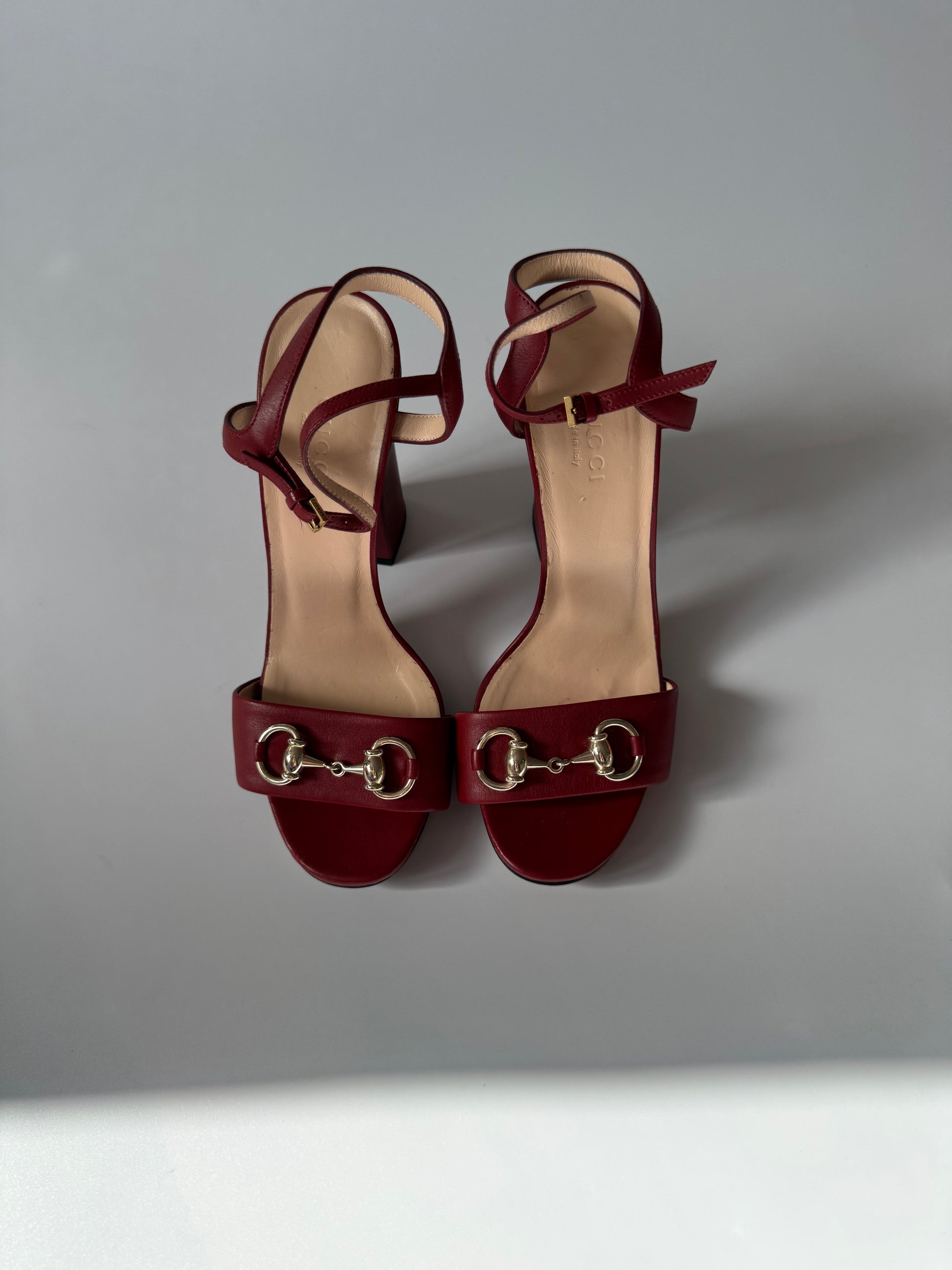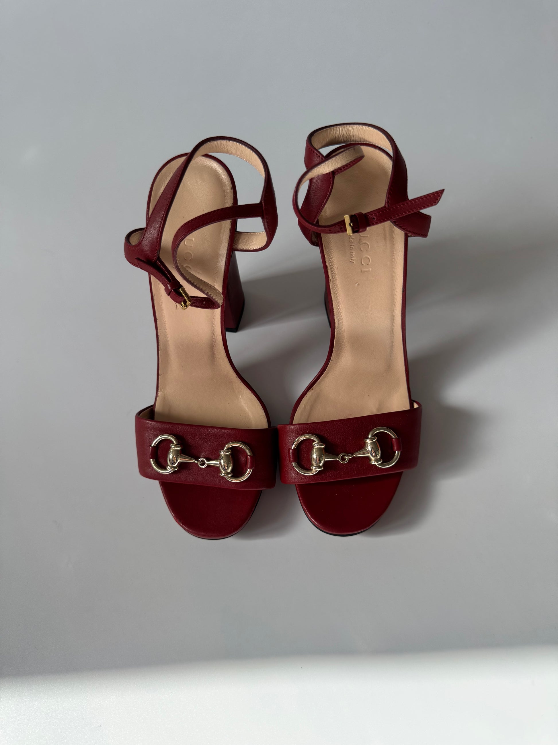 Gucci Vintage Burgundy Leather Horsebit Sandals, size 36 UK 3.5