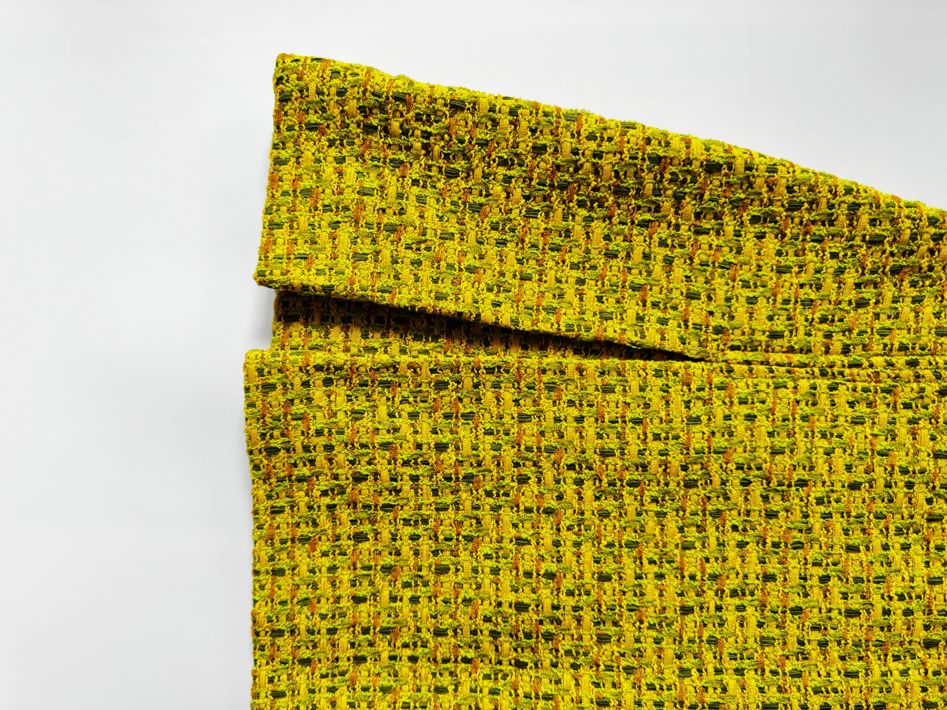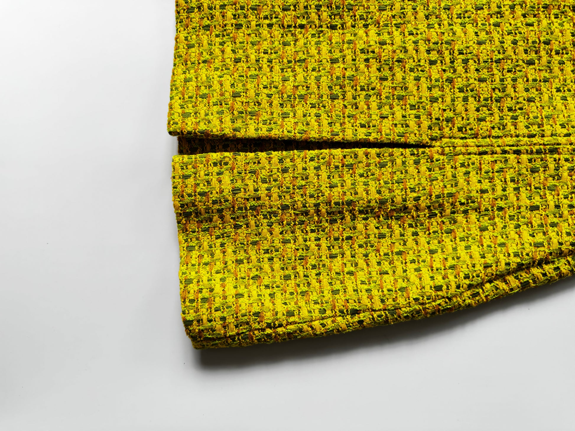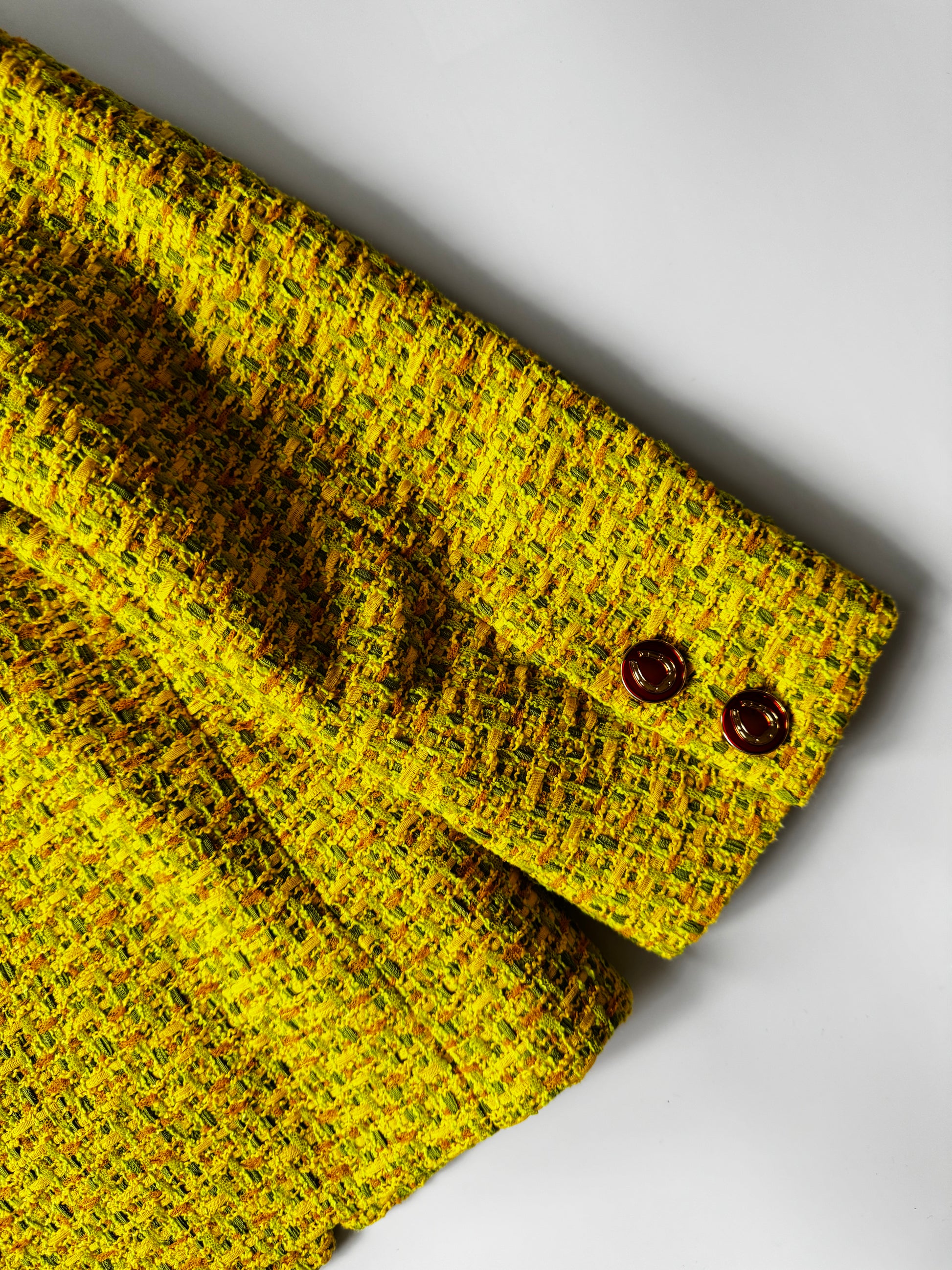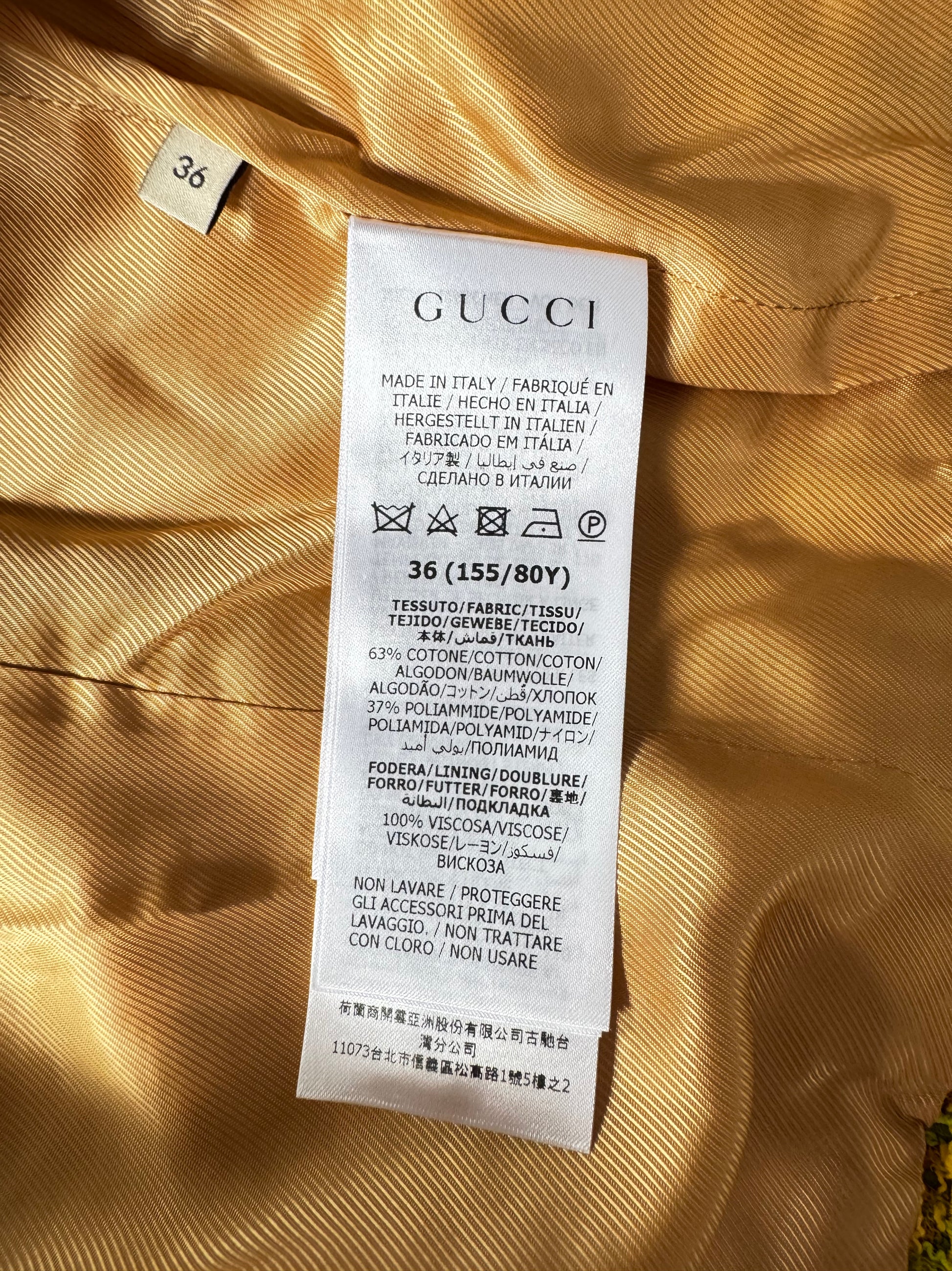 Crafted in vibrant yellow tweed with gold-tone horseshoe buttons. A chic two-piece set that embodies classic Gucci tailoring — timeless, structured, and feminine.
