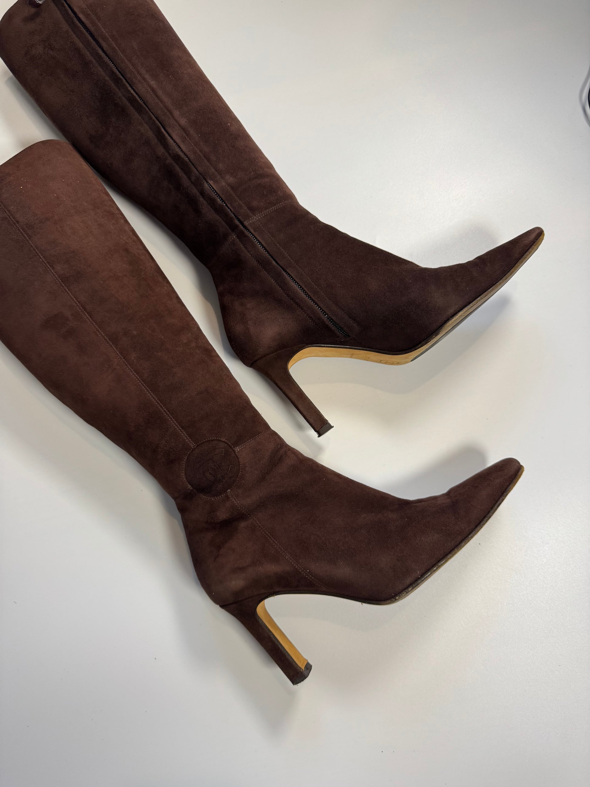 Chanel Suede Knee-High Boots – Brown (size 37)