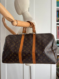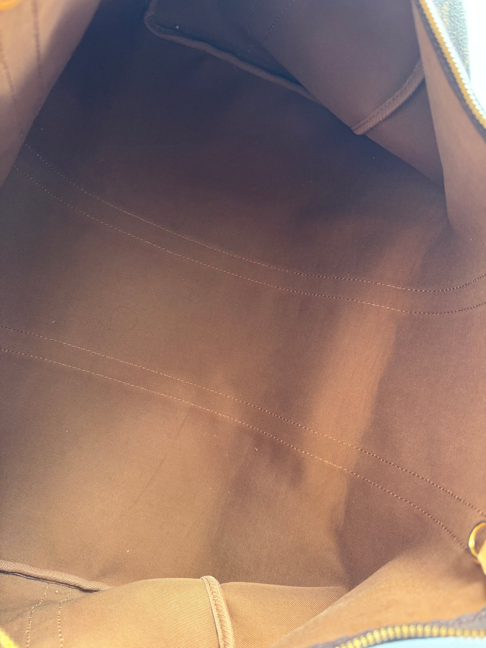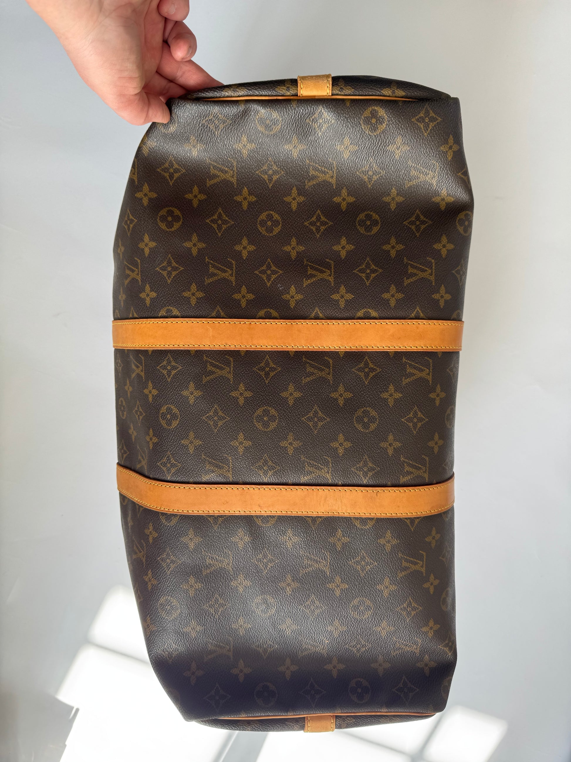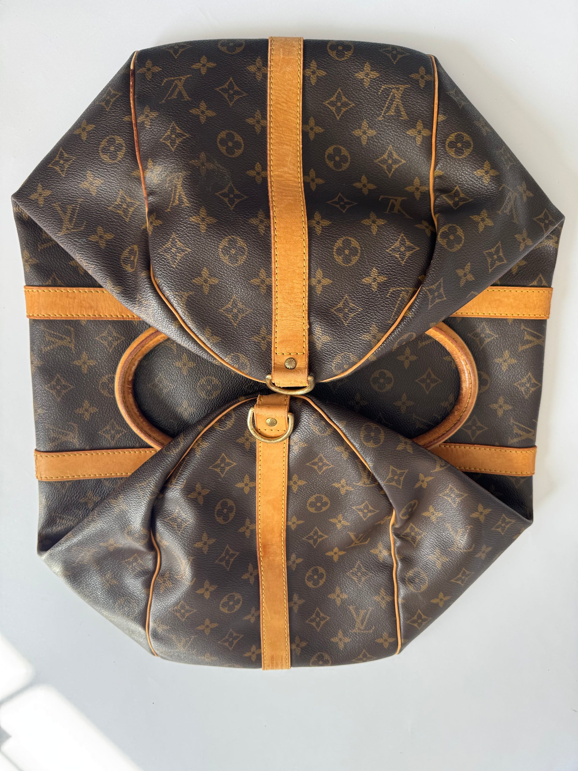 Details: Iconic Louis Vuitton travel bag crafted in classic monogram canvas with natural leather trim. Double zip closure and spacious interior — ideal for longer trips or weekend getaways.