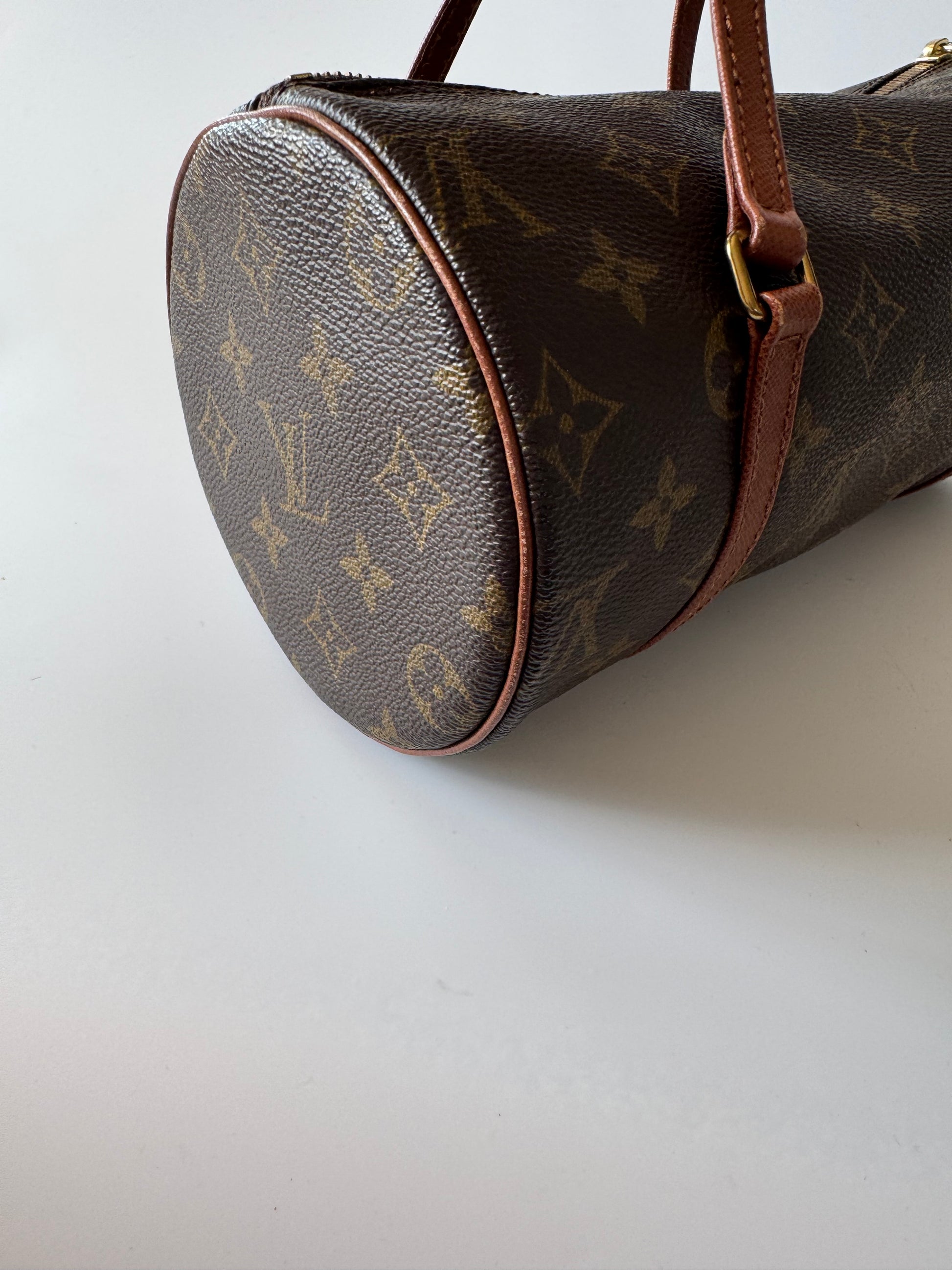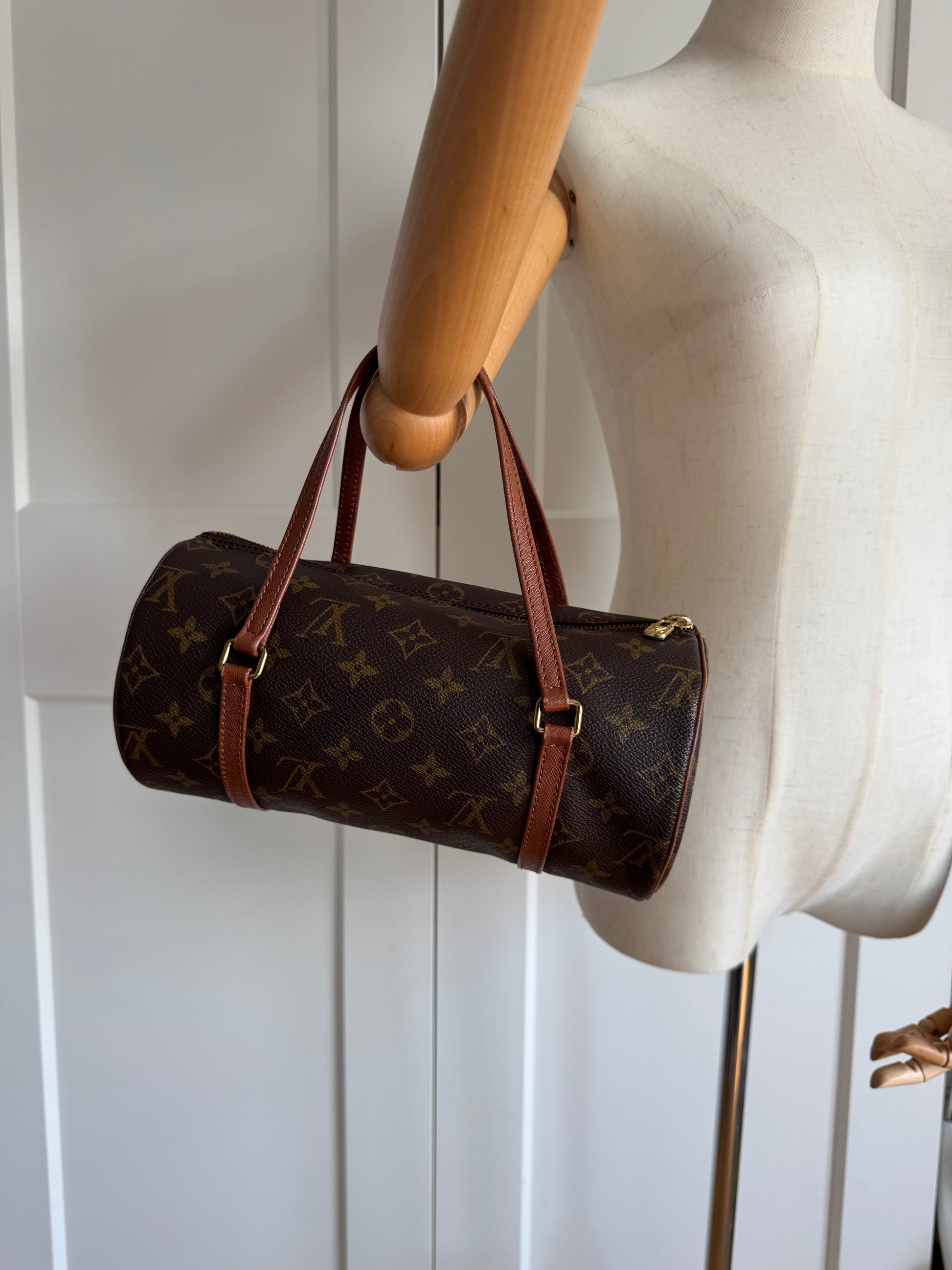 Details: Iconic cylindrical silhouette in classic Louis Vuitton monogram canvas with leather handles and zip closure.