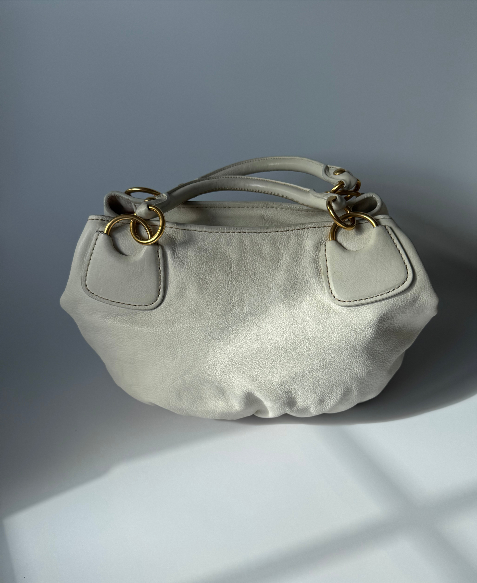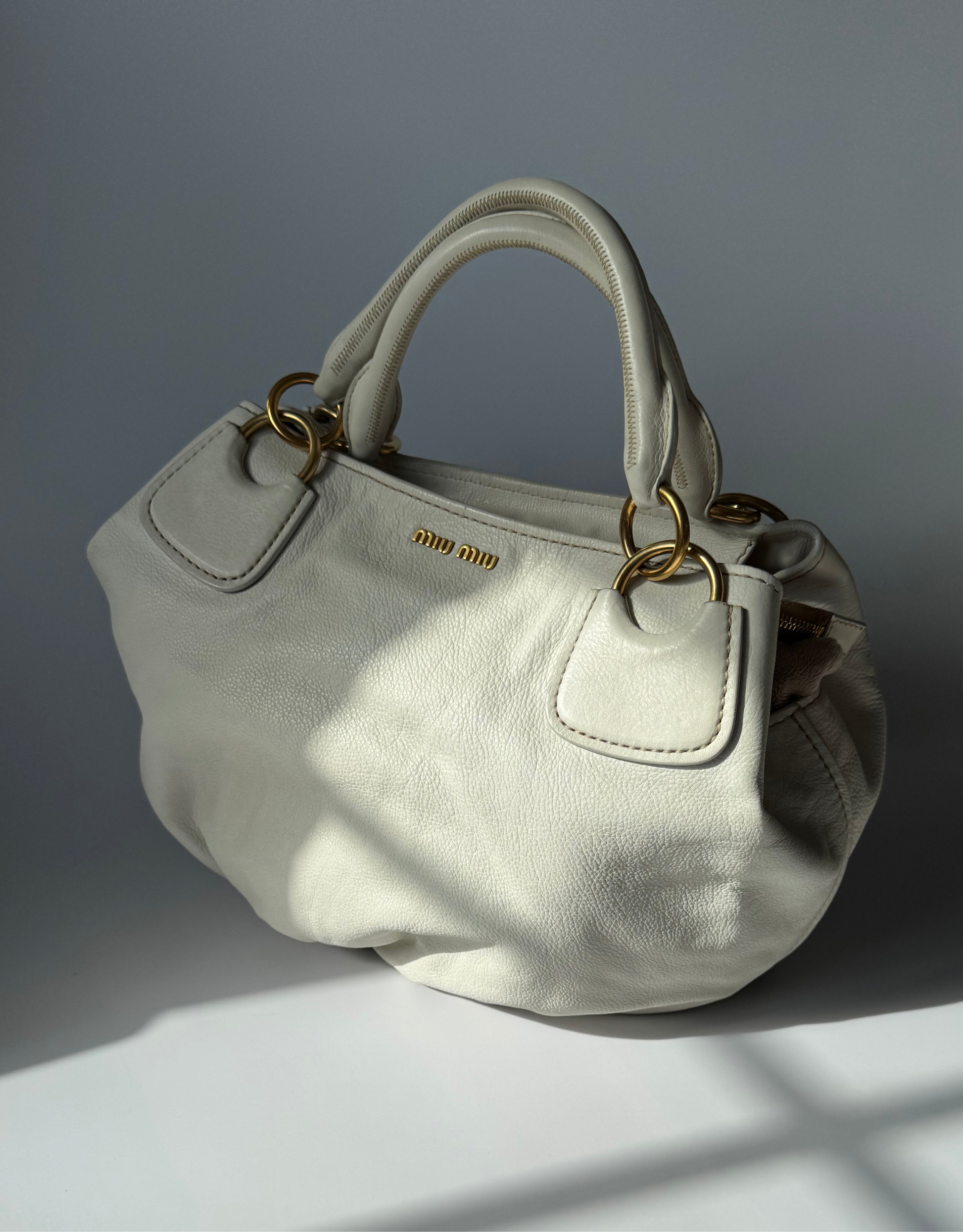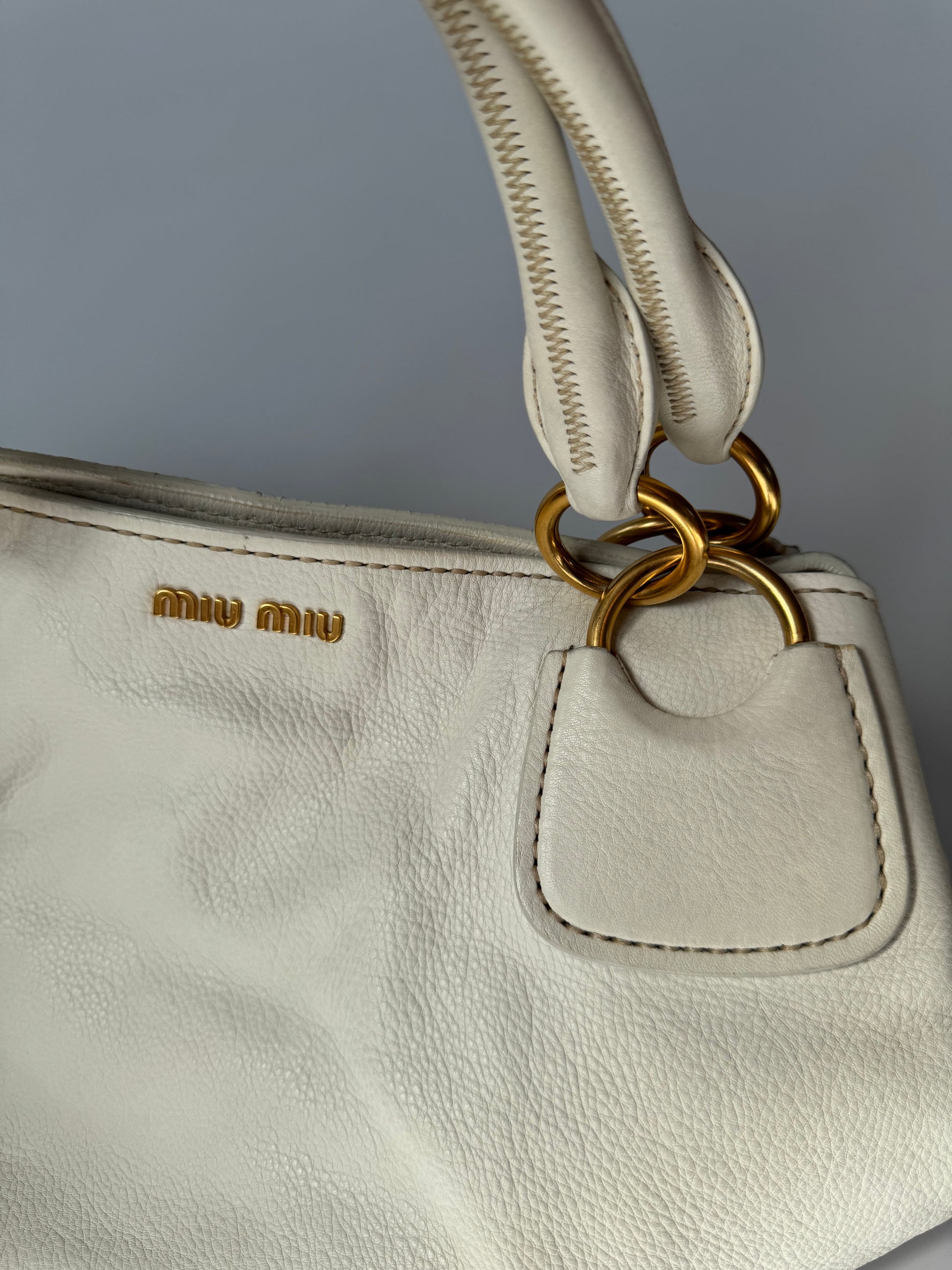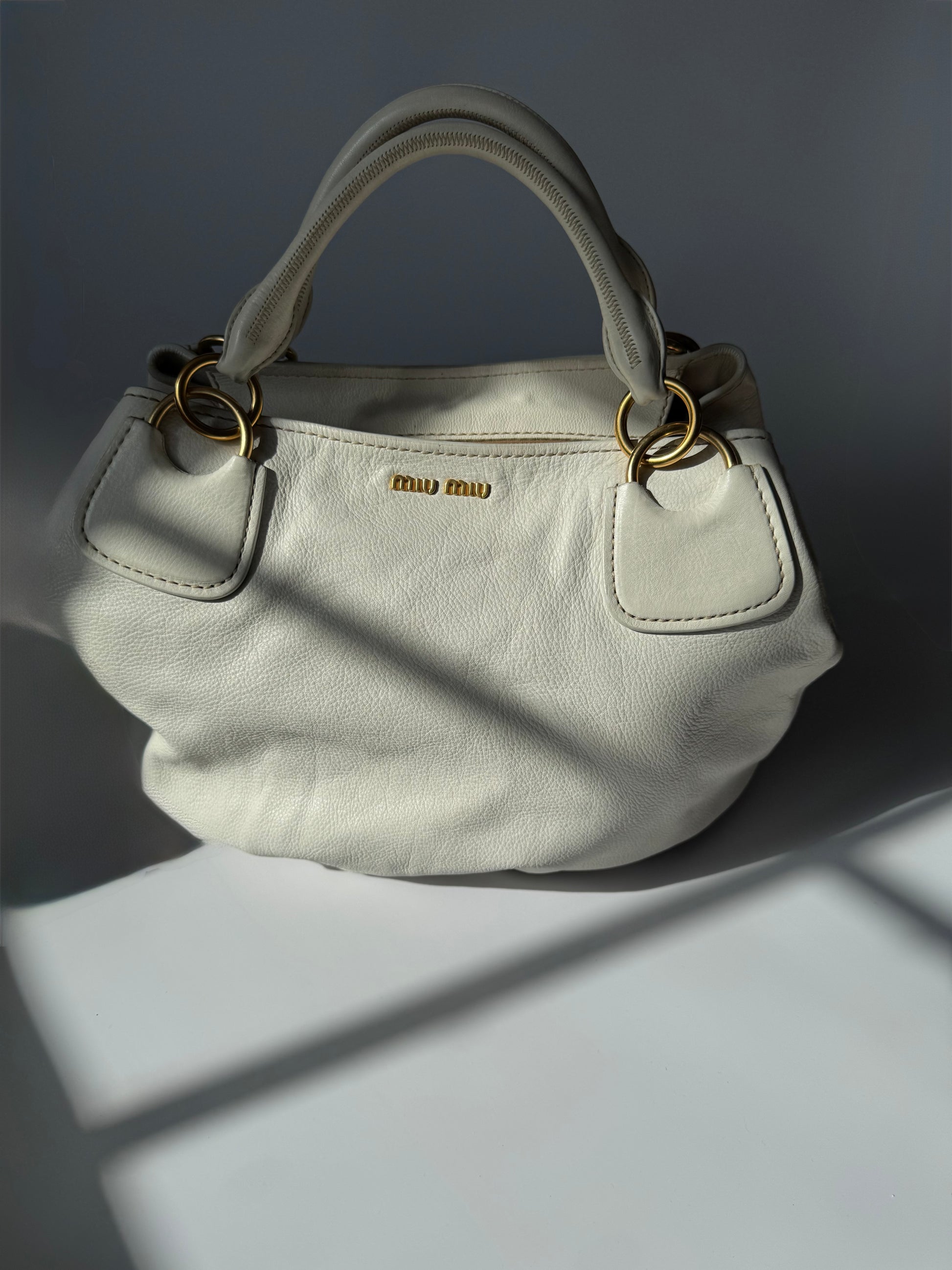 2000s Miu Miu Vintage White Leather Top Handle Bag