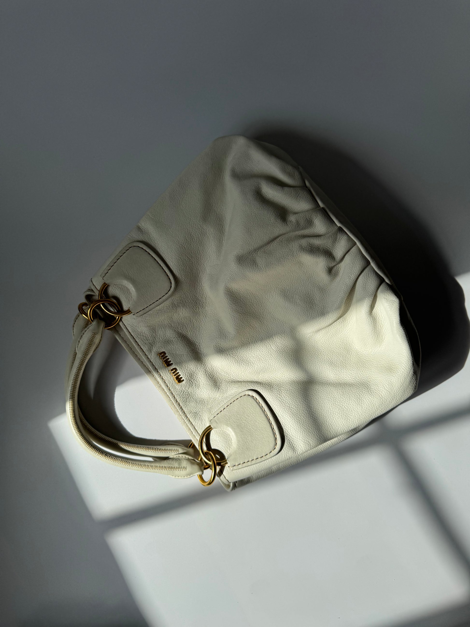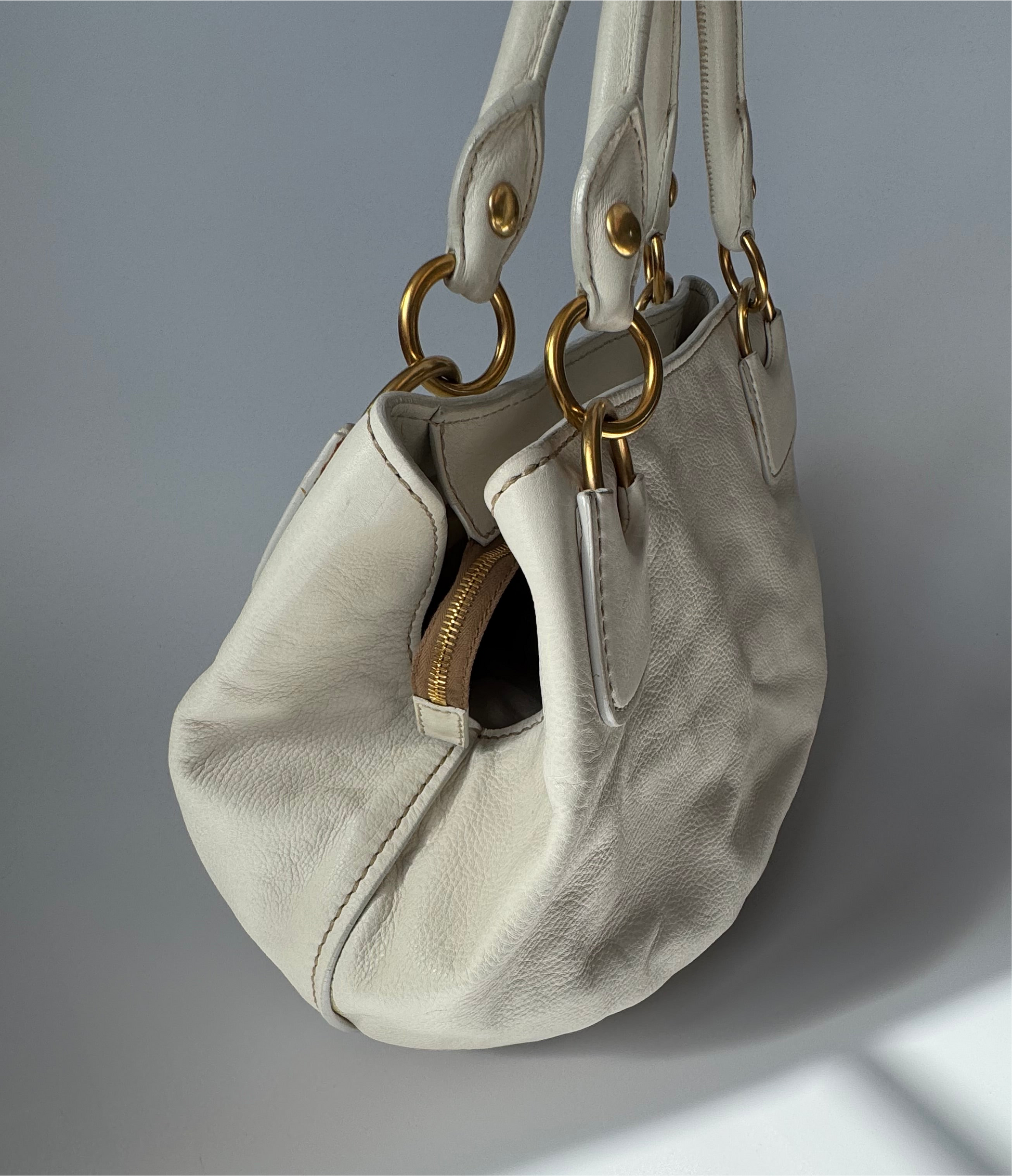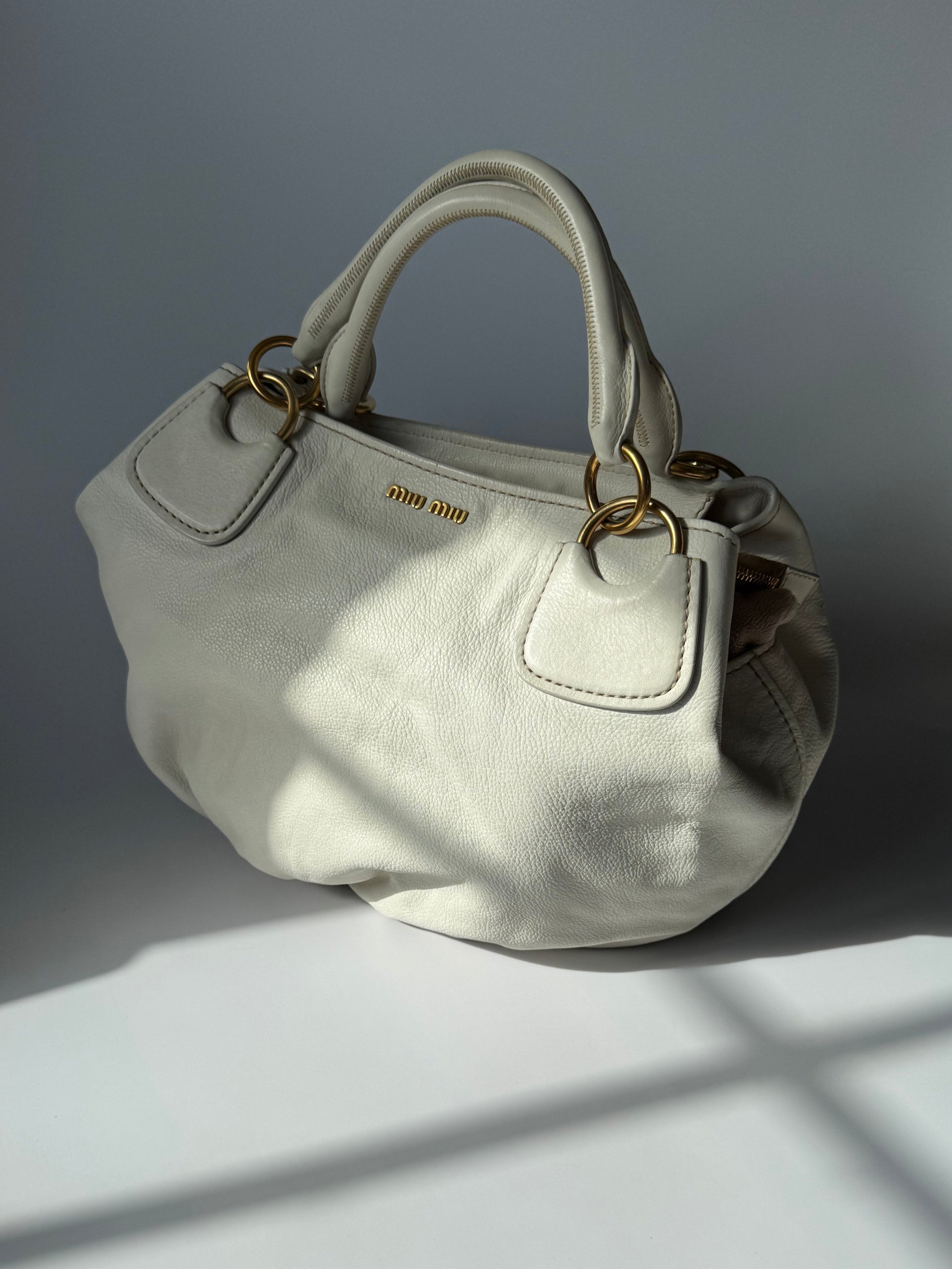 2000s Miu Miu Vintage White Leather Top Handle Bag