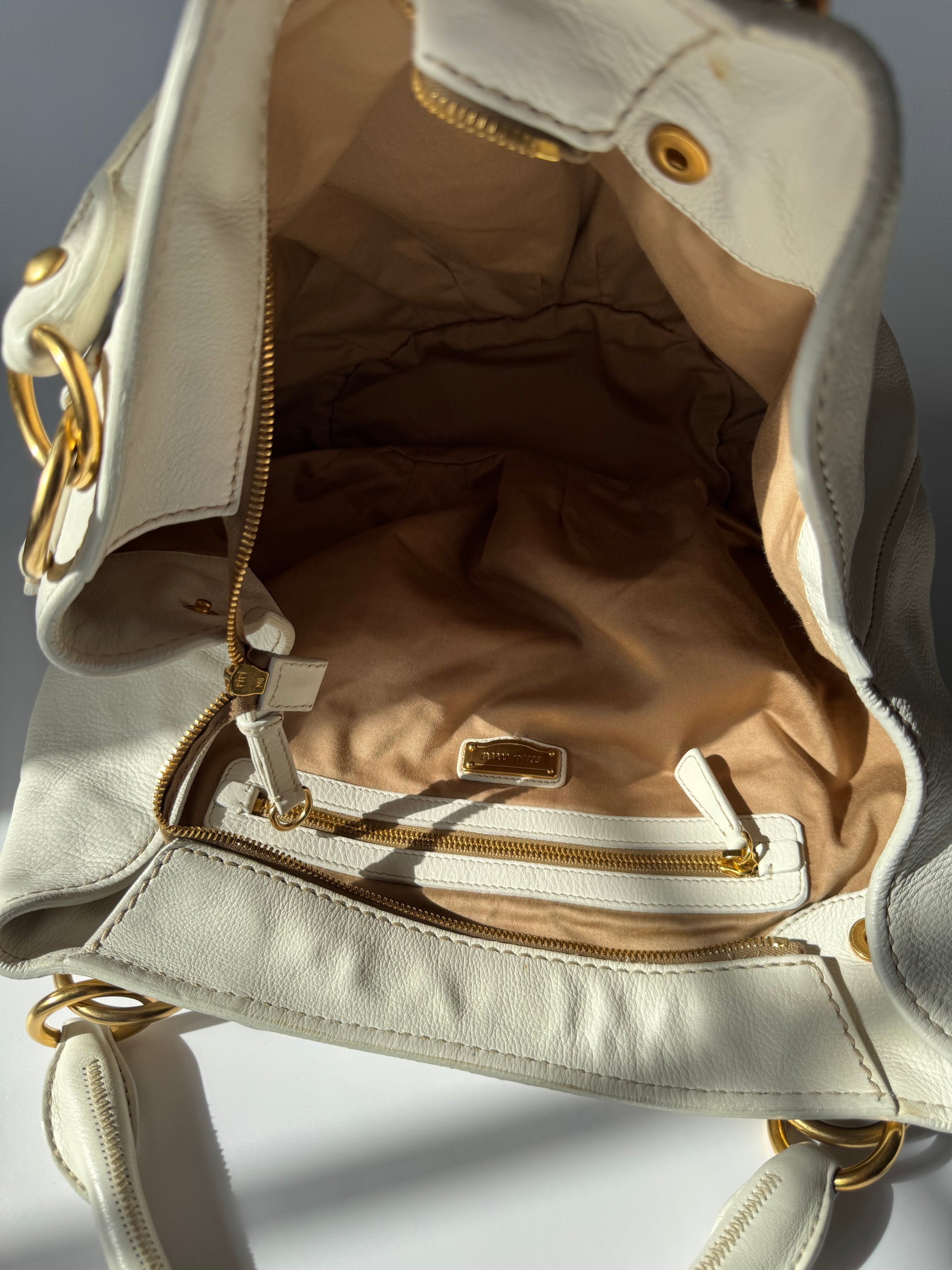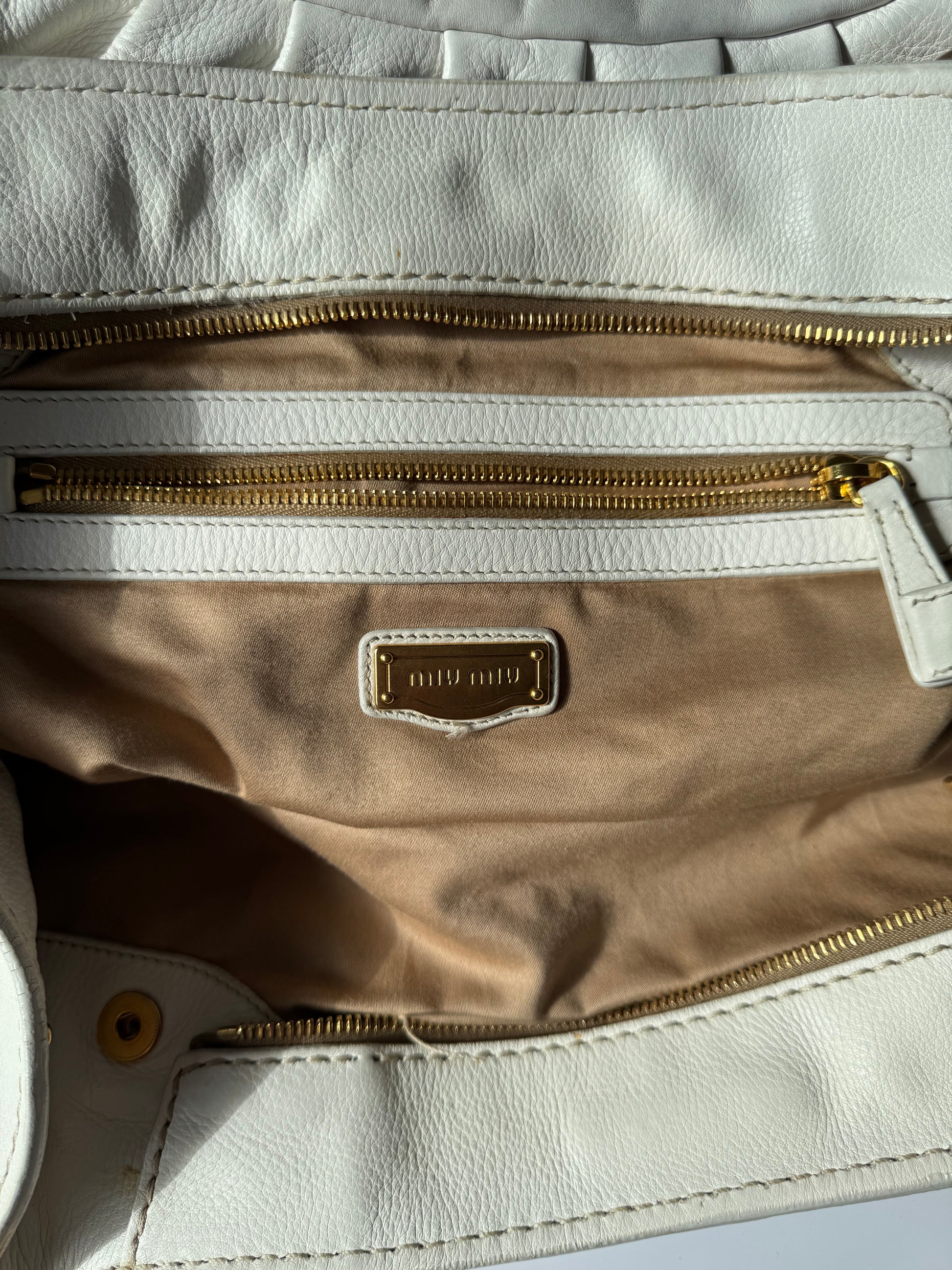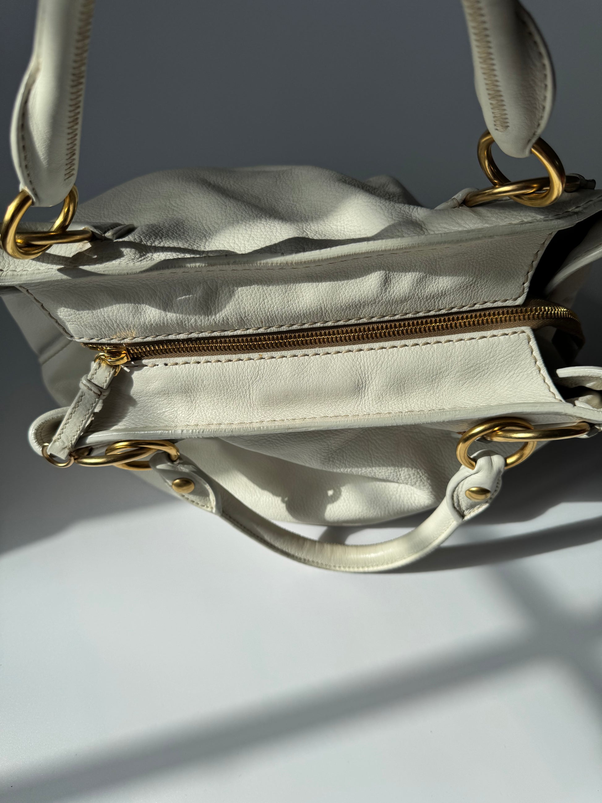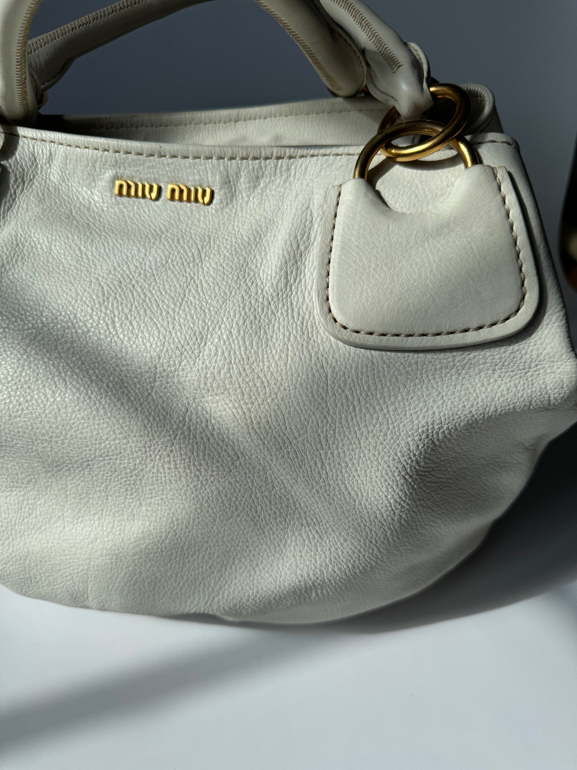 2000s Miu Miu Vintage White Leather Top Handle Bag