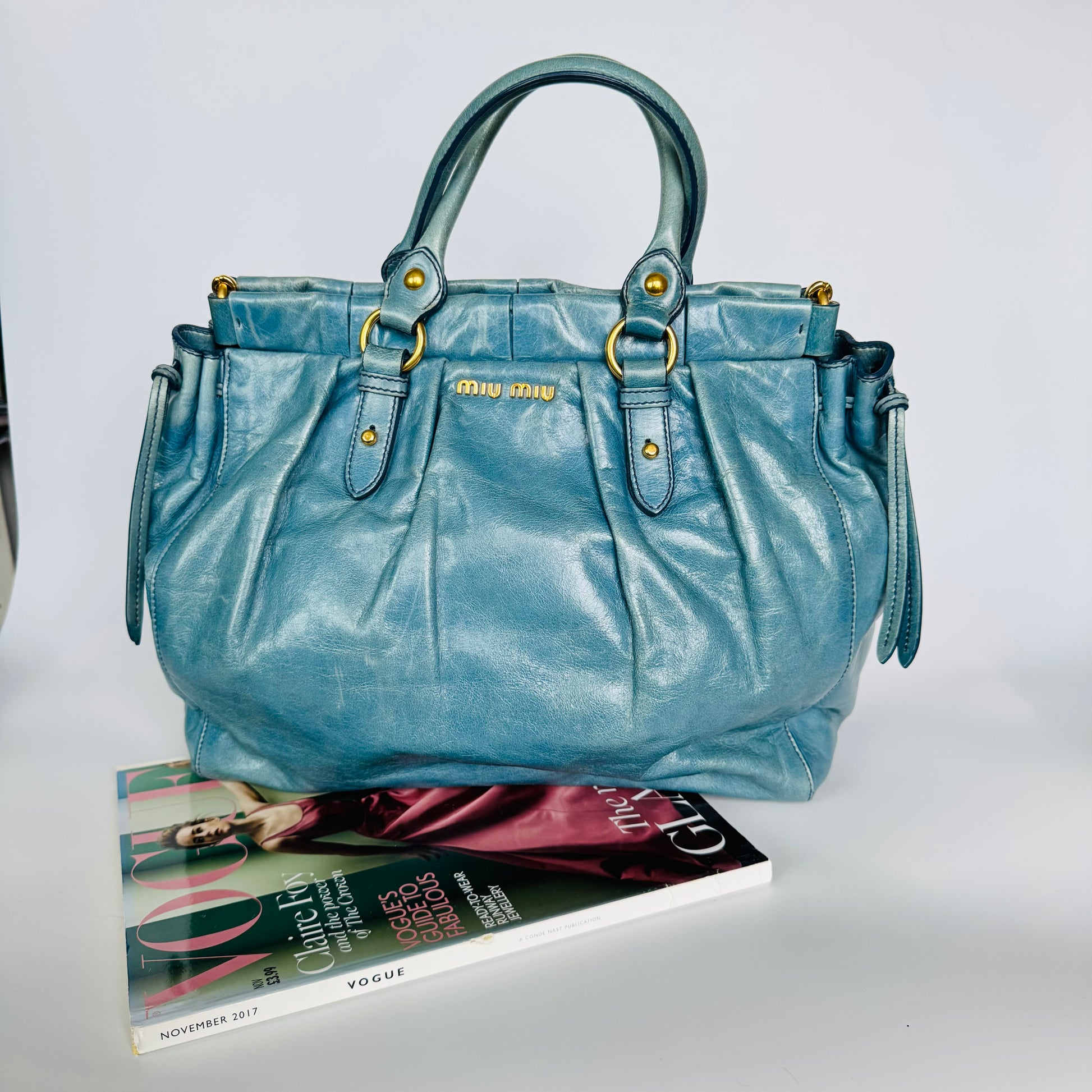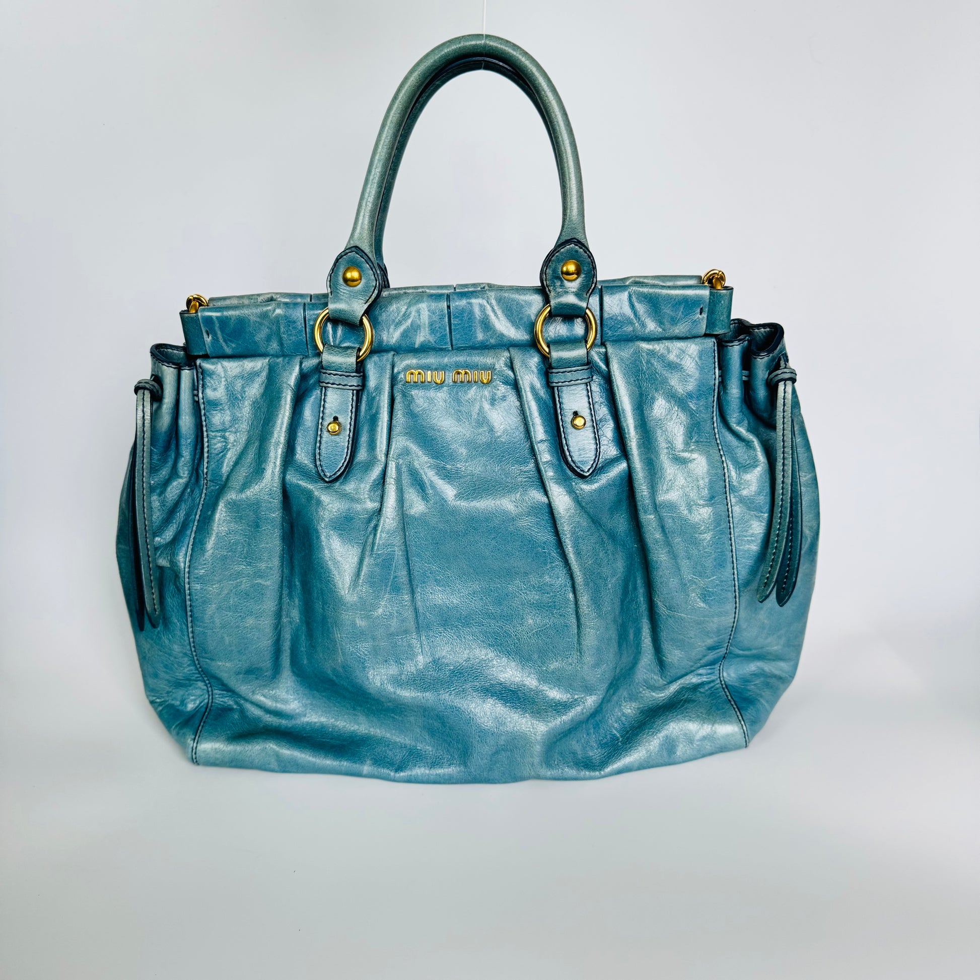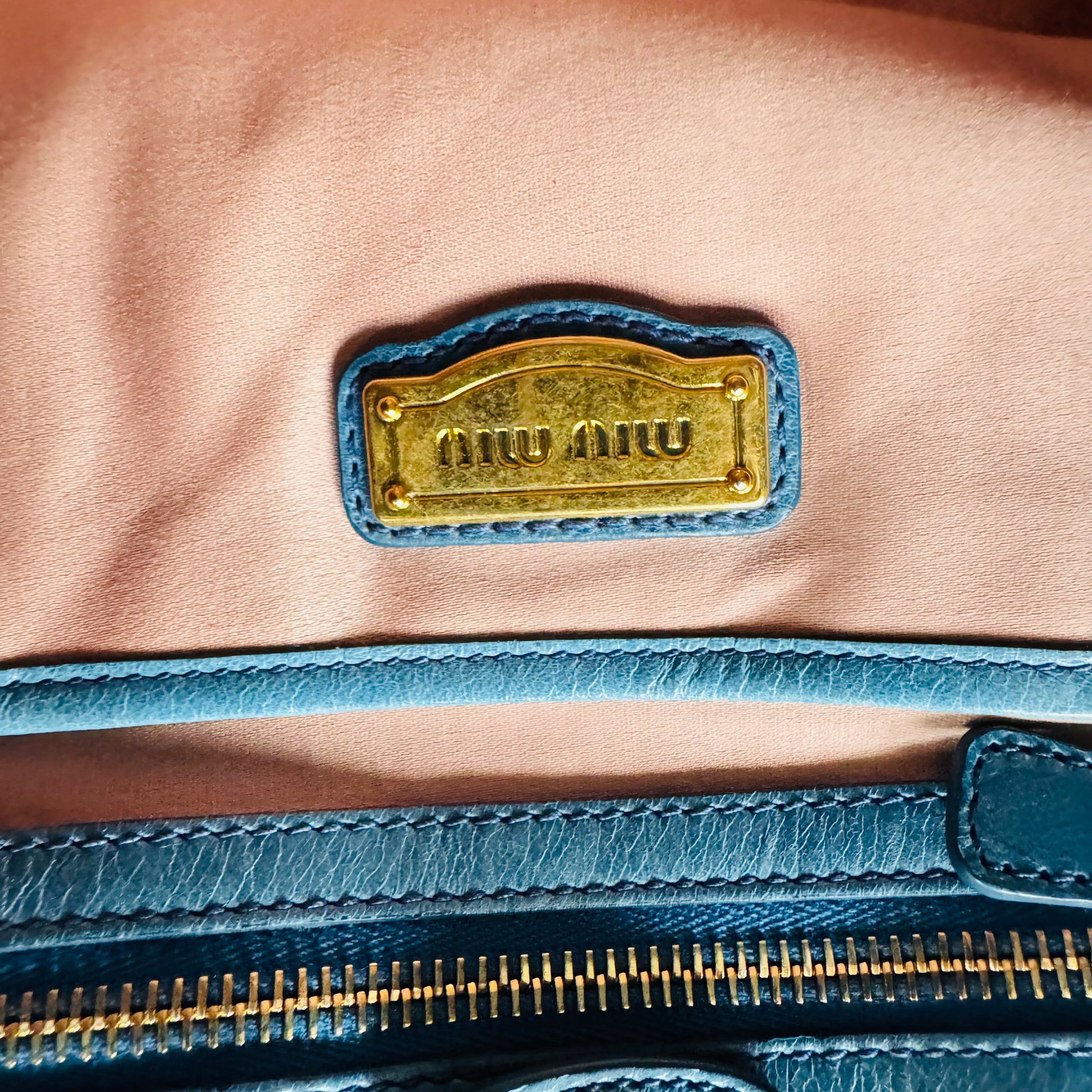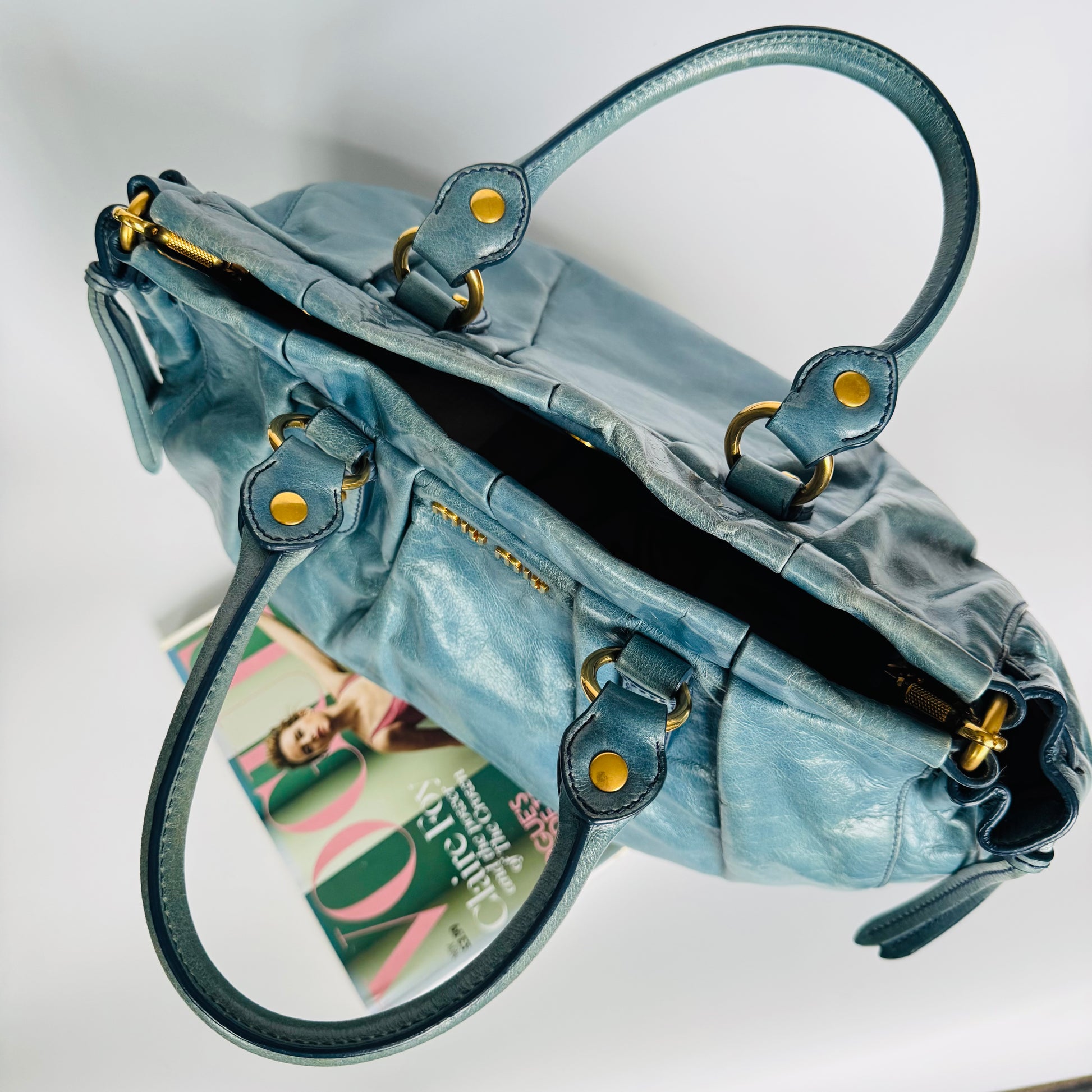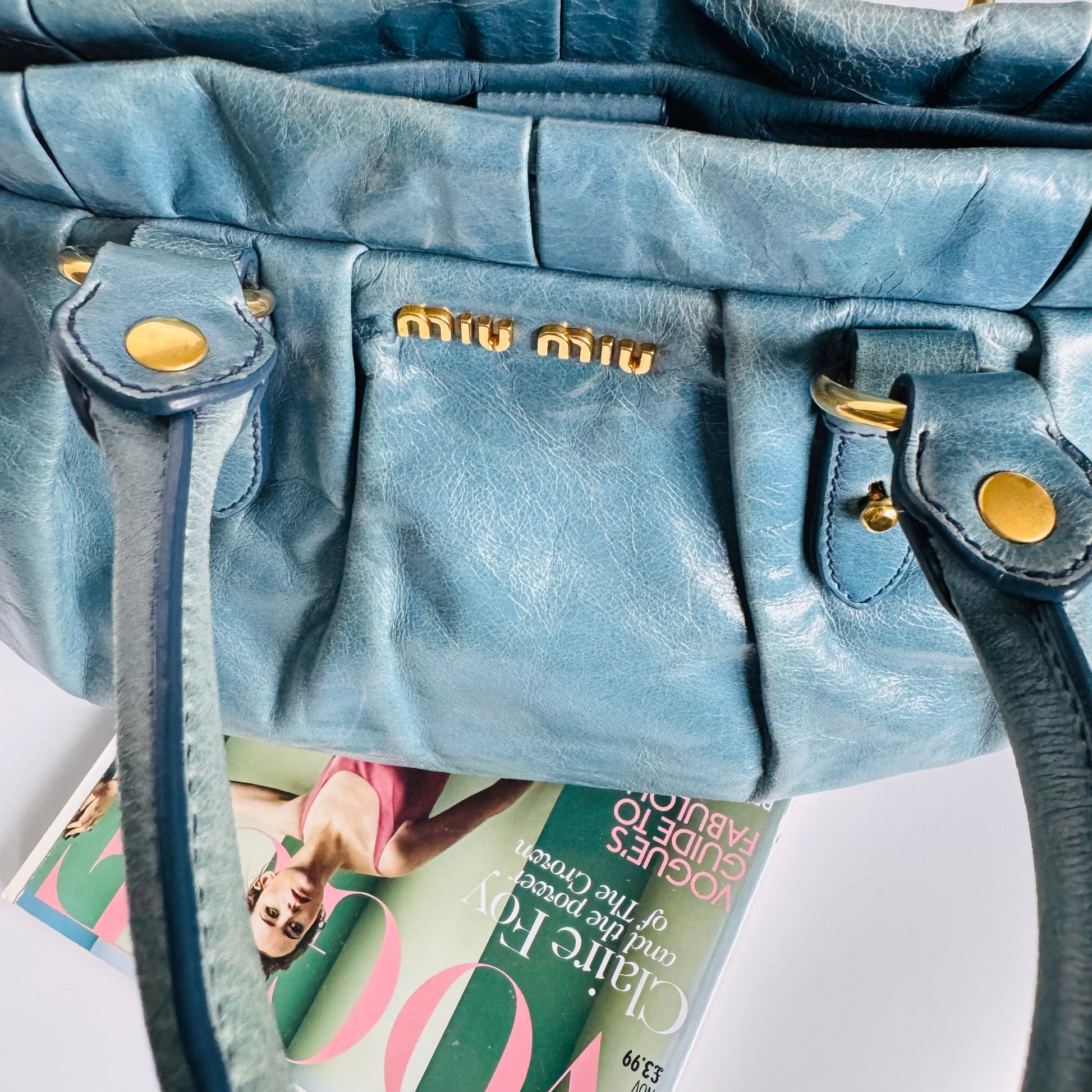Miu Miu Blue Vitello Leather Handbag