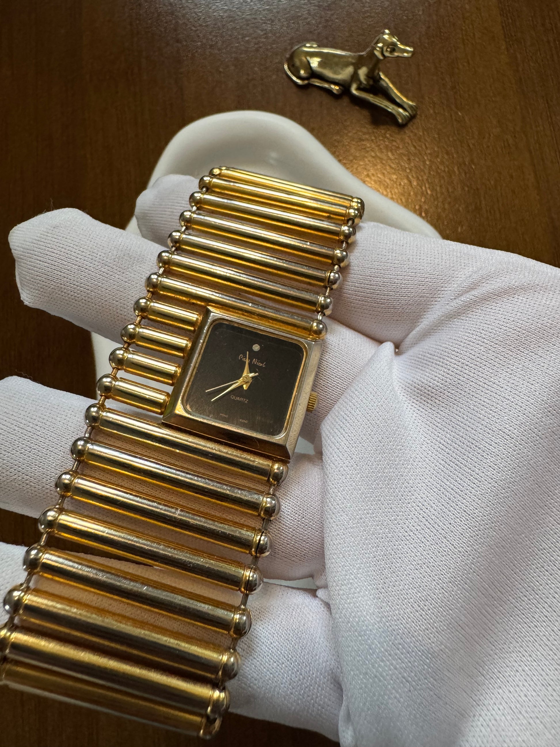 Pierre Nicol Vintage-Style Gold Bar Bracelet Watch