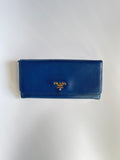 Prada Vintage Blue Saffiano Leather Wallet with Gold Logo