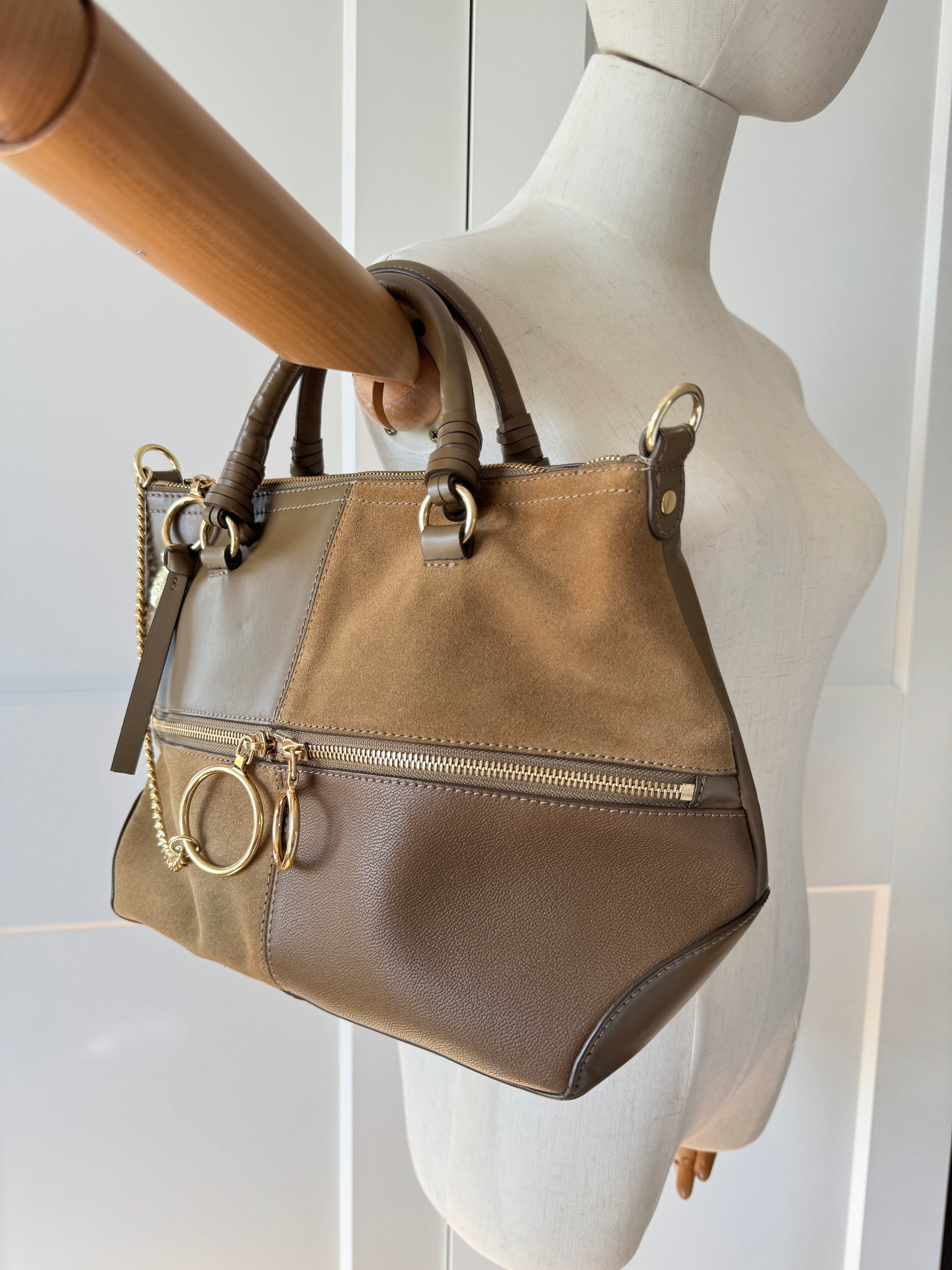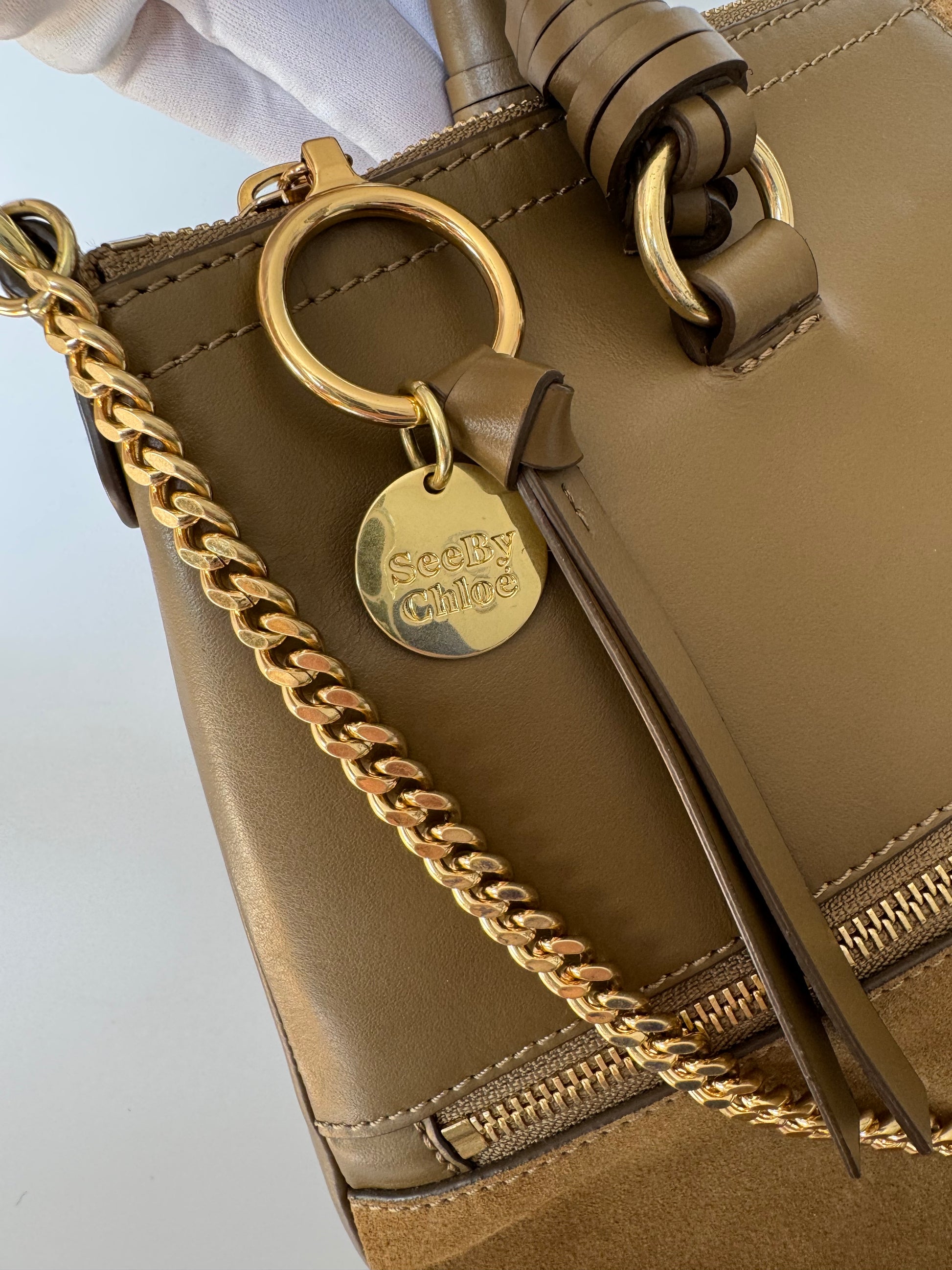 See By Chloé Emy Medium Satchel Taupe Leather & Suede