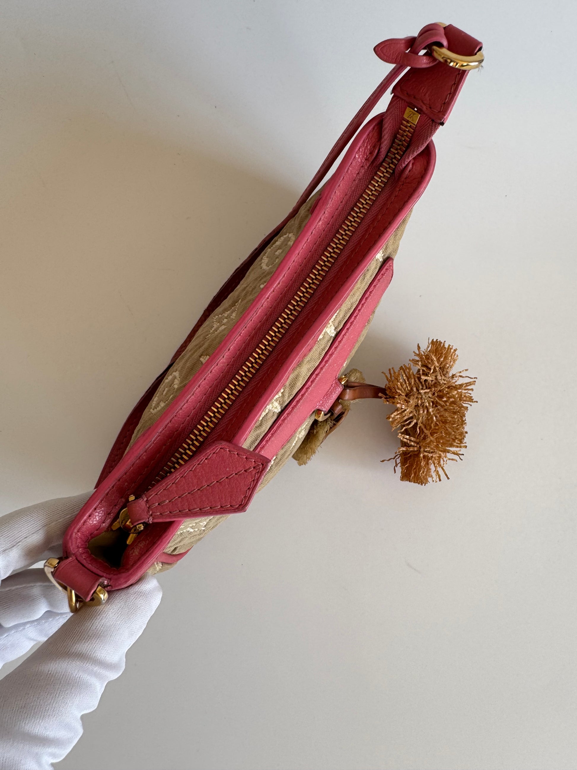 More info: A rare Louis Vuitton Cruise 2011 limited edition from the Monogram Sabbia line — soft, feminine and highly collectible, with delicate detailing that captures the essence of Y2K luxury.