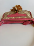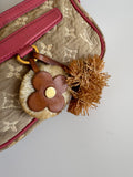 Details: Monogram Sabbia jacquard canvas, rose leather trim, single shoulder strap, zip closure, decorative cowhide floral and pompom charm, compact silhouette