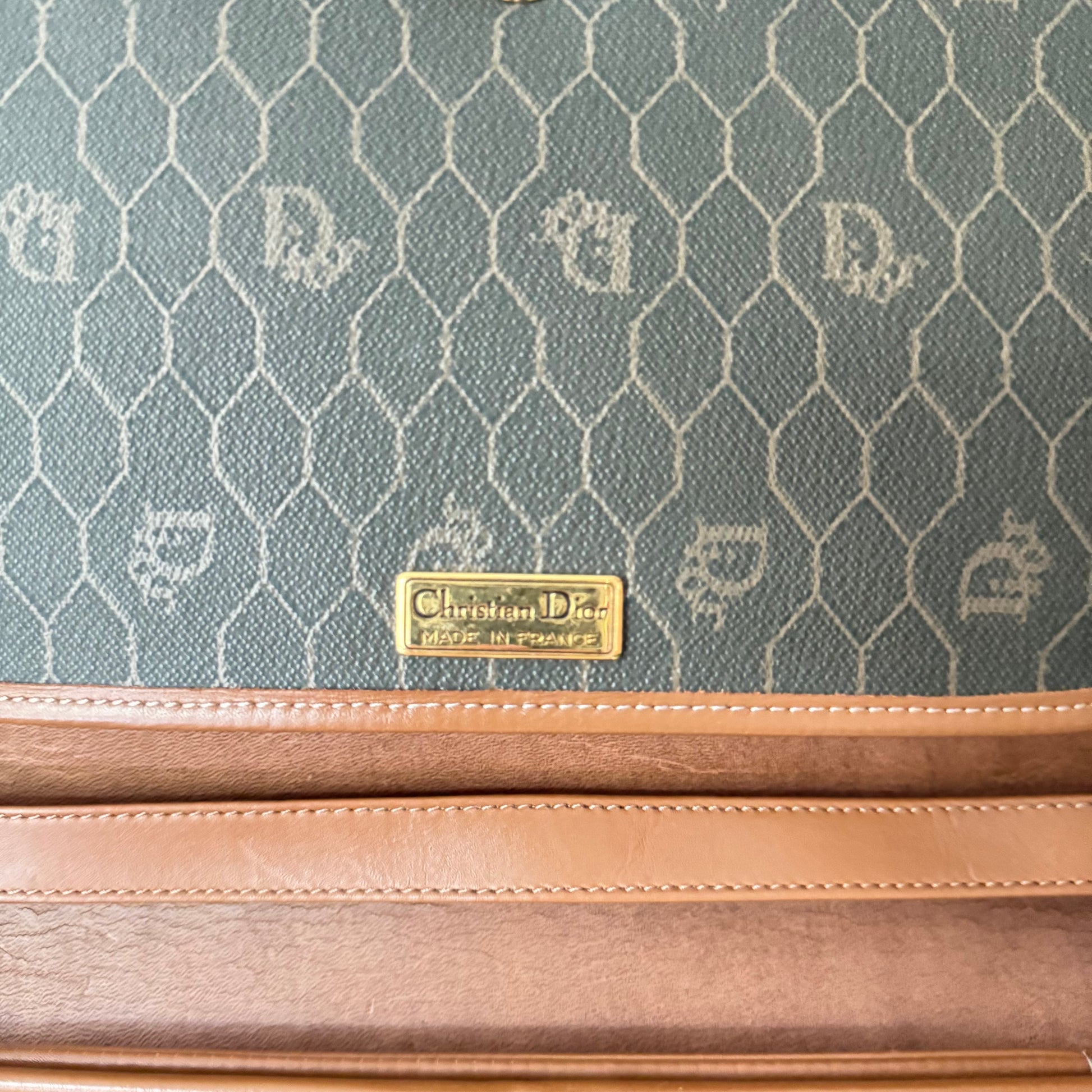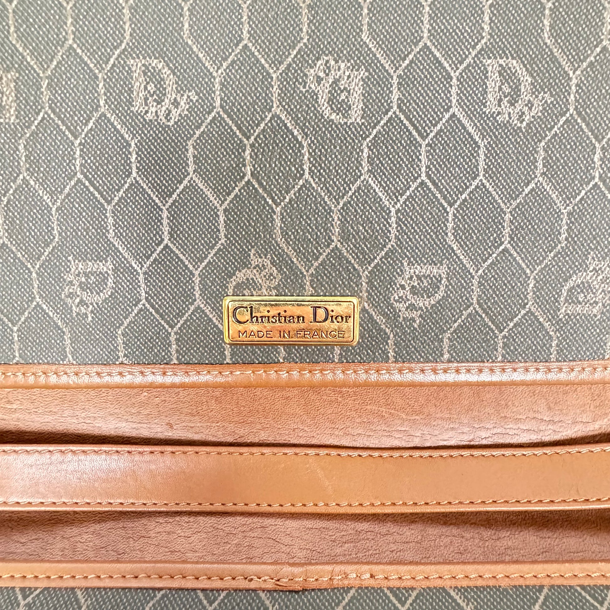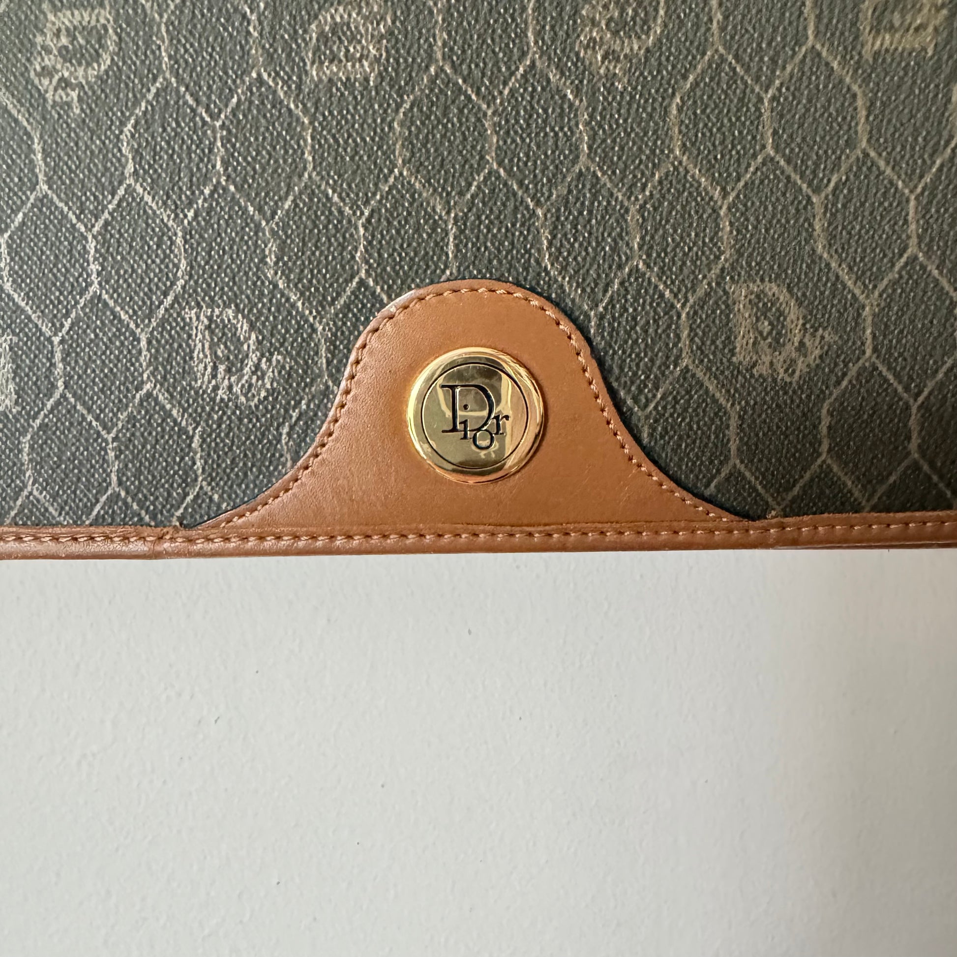 Honeycomb monogram canvas with tan leather trim