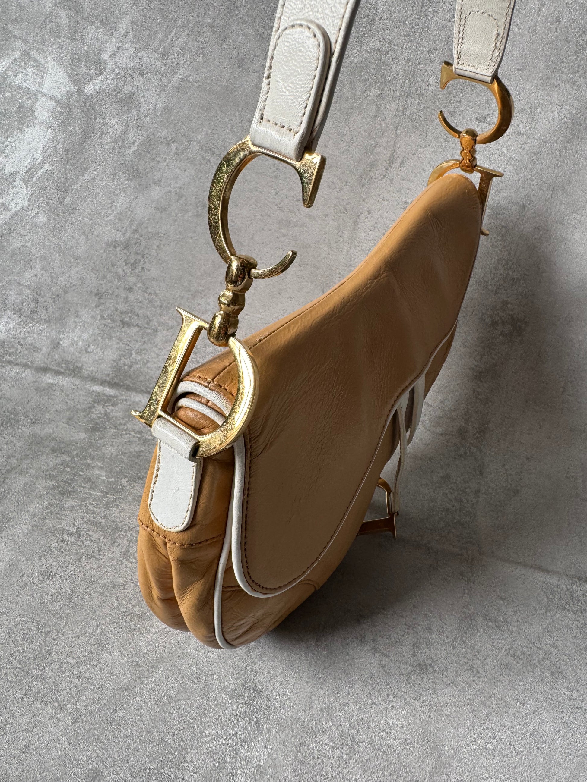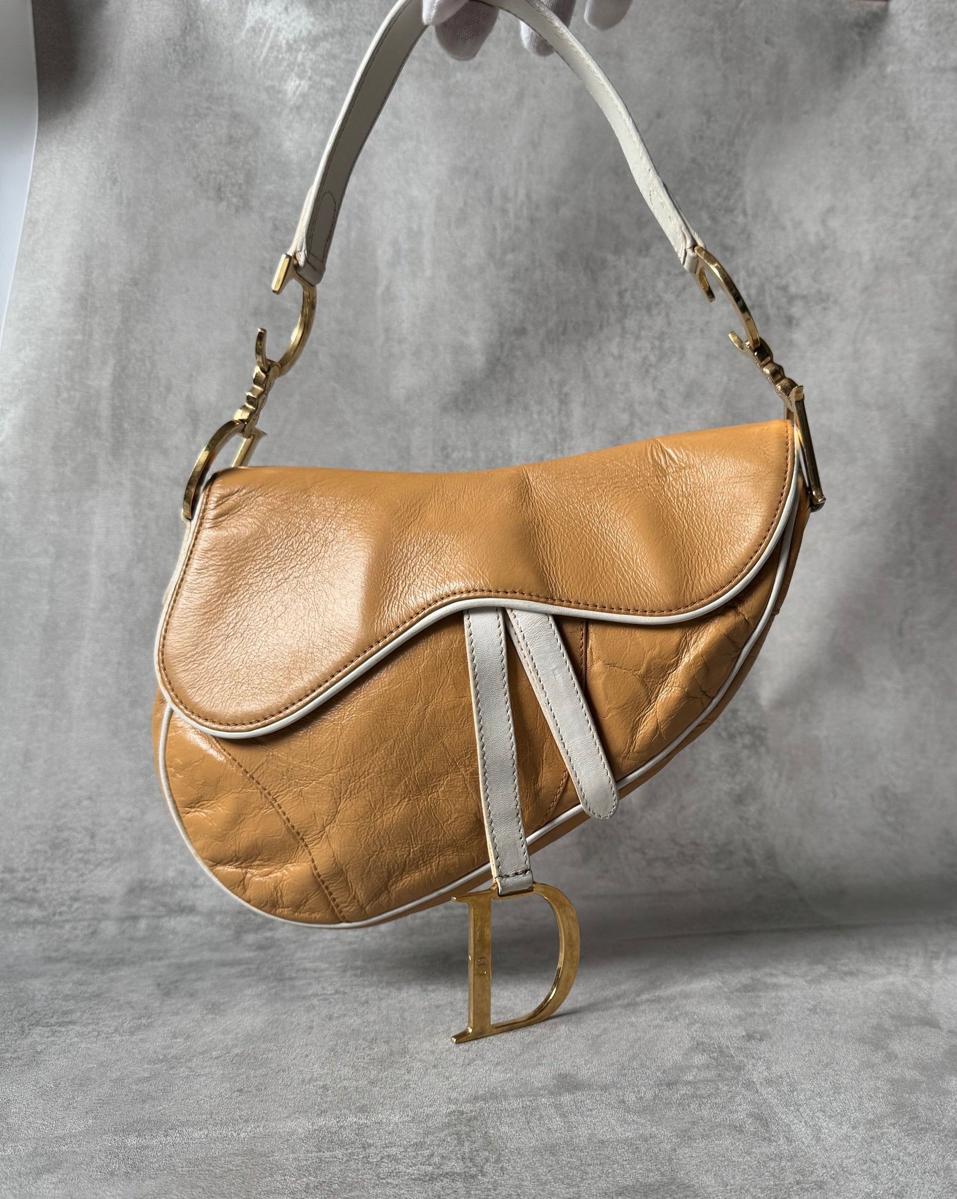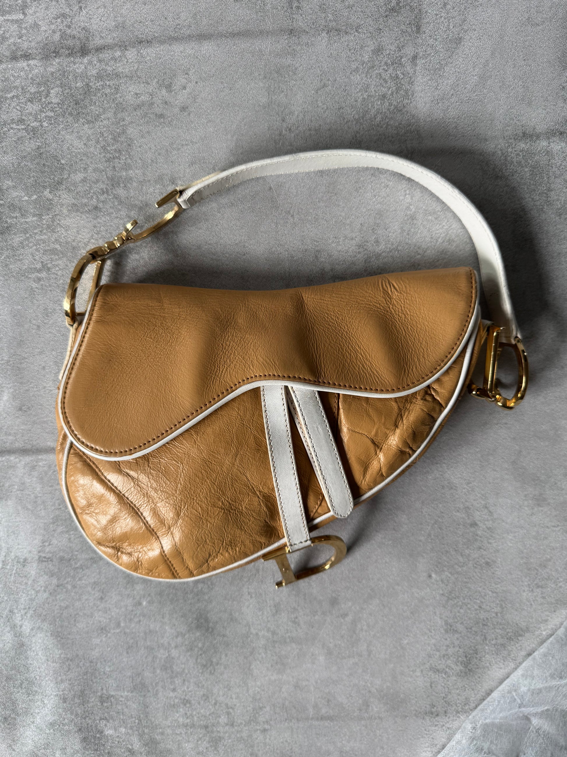Christian Dior Saddle Bag – Beige & White Leather (c. Early 2000s, John Galliano Era)