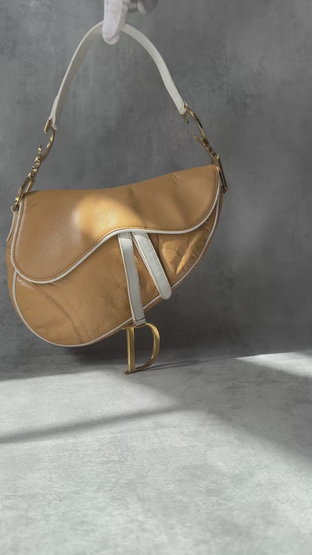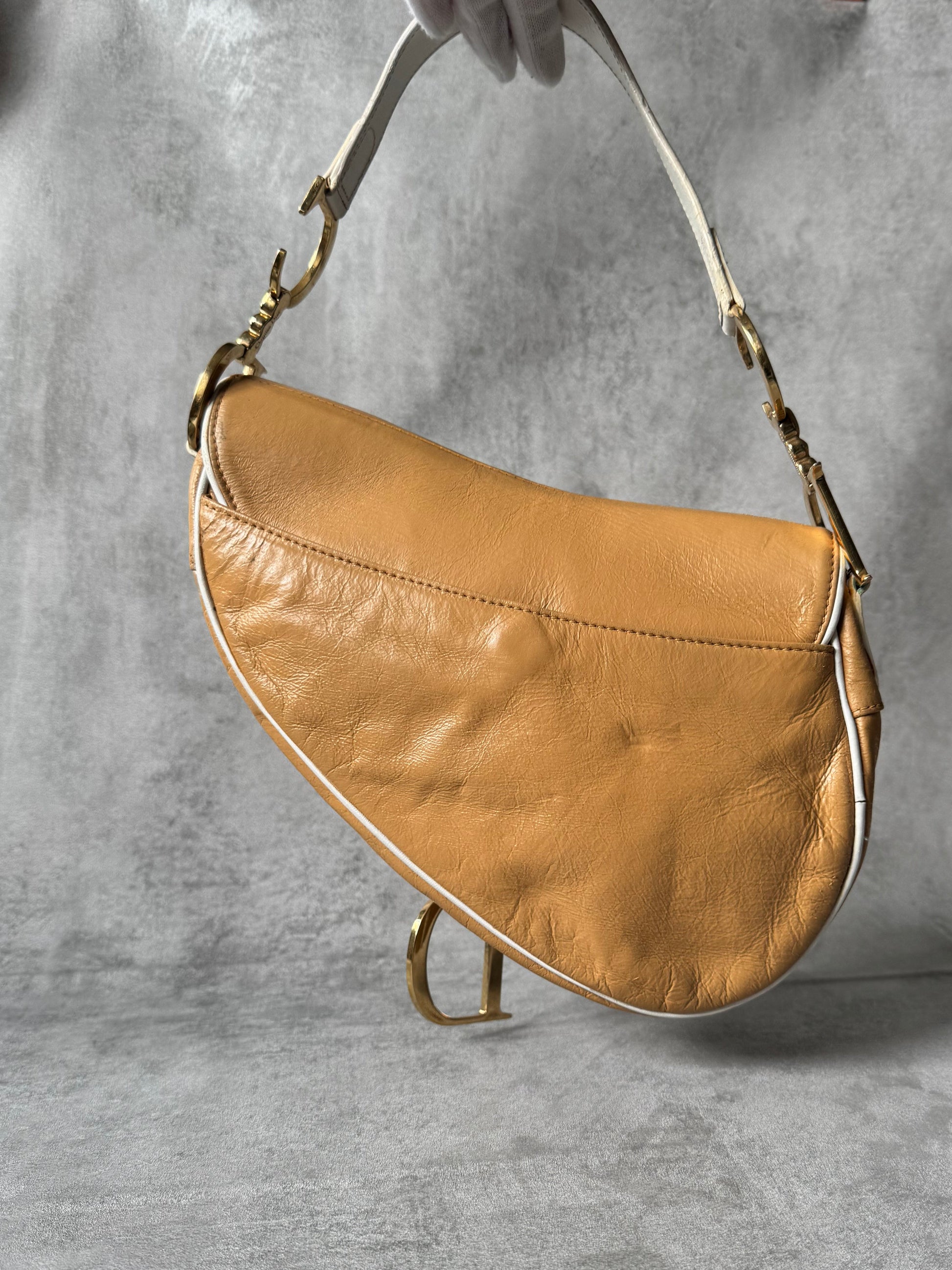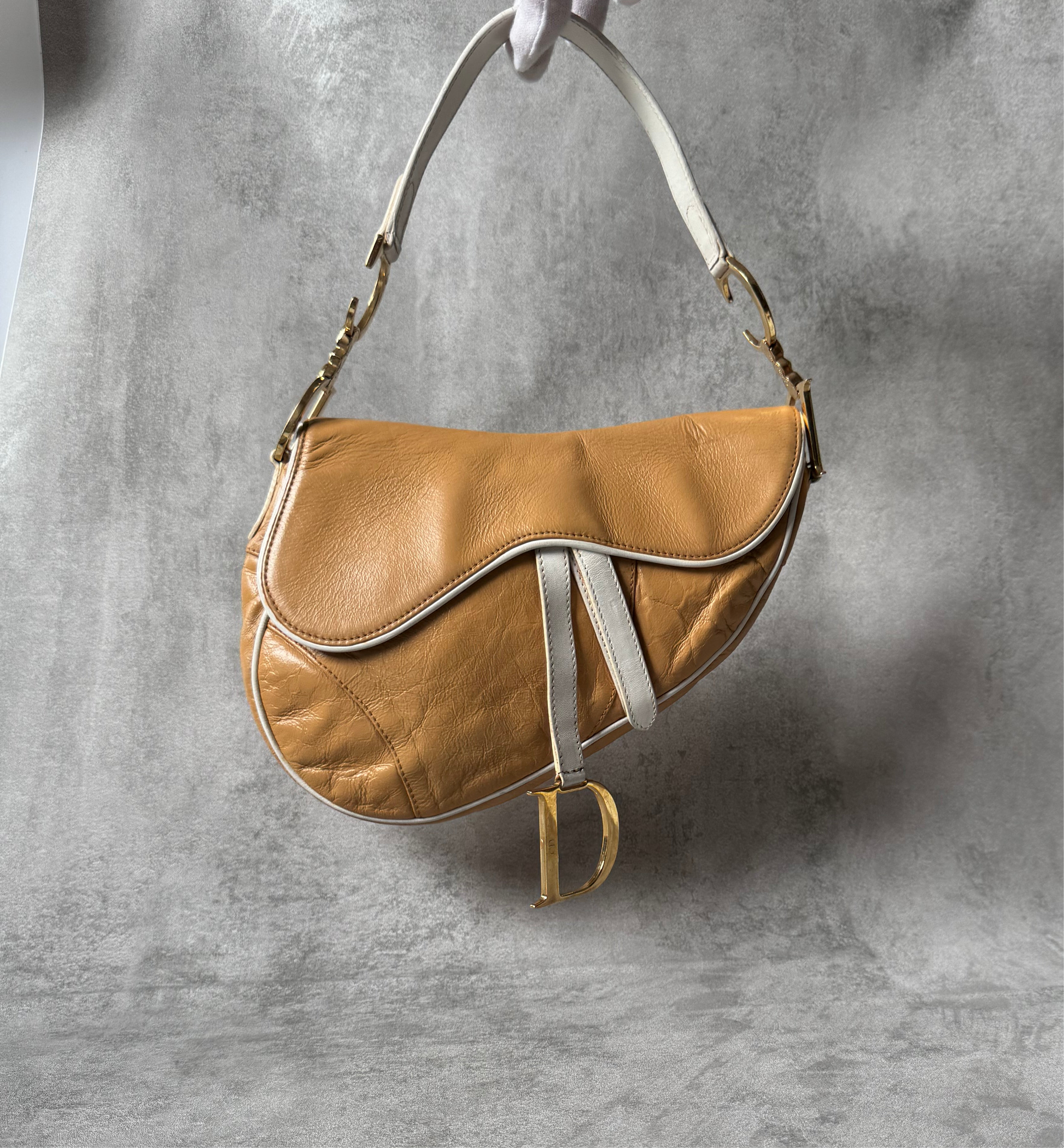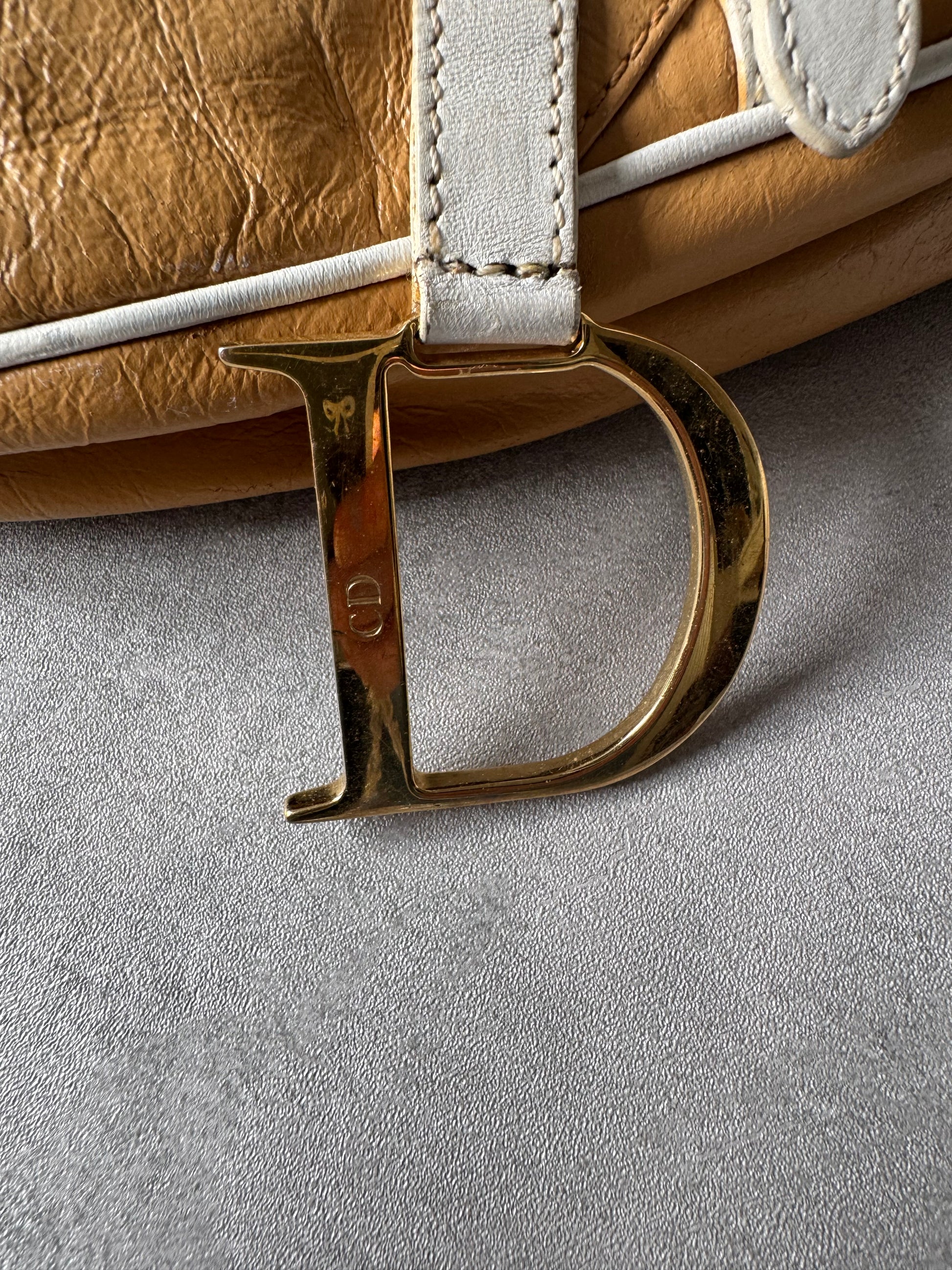 Christian Dior Saddle Bag – Beige & White Leather (c. Early 2000s, John Galliano Era)