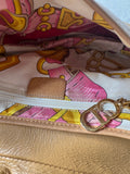 This authentic vintage Dior Saddle Bag is an iconic Y2K-era piece from the John Galliano era, featuring the house’s signature saddle silhouette in a rare beige and white leather combination. Designed to turn heads, it showcases buttery beige leather contrasted with crisp white piping and trim, accented by bold gold-tone hardware.