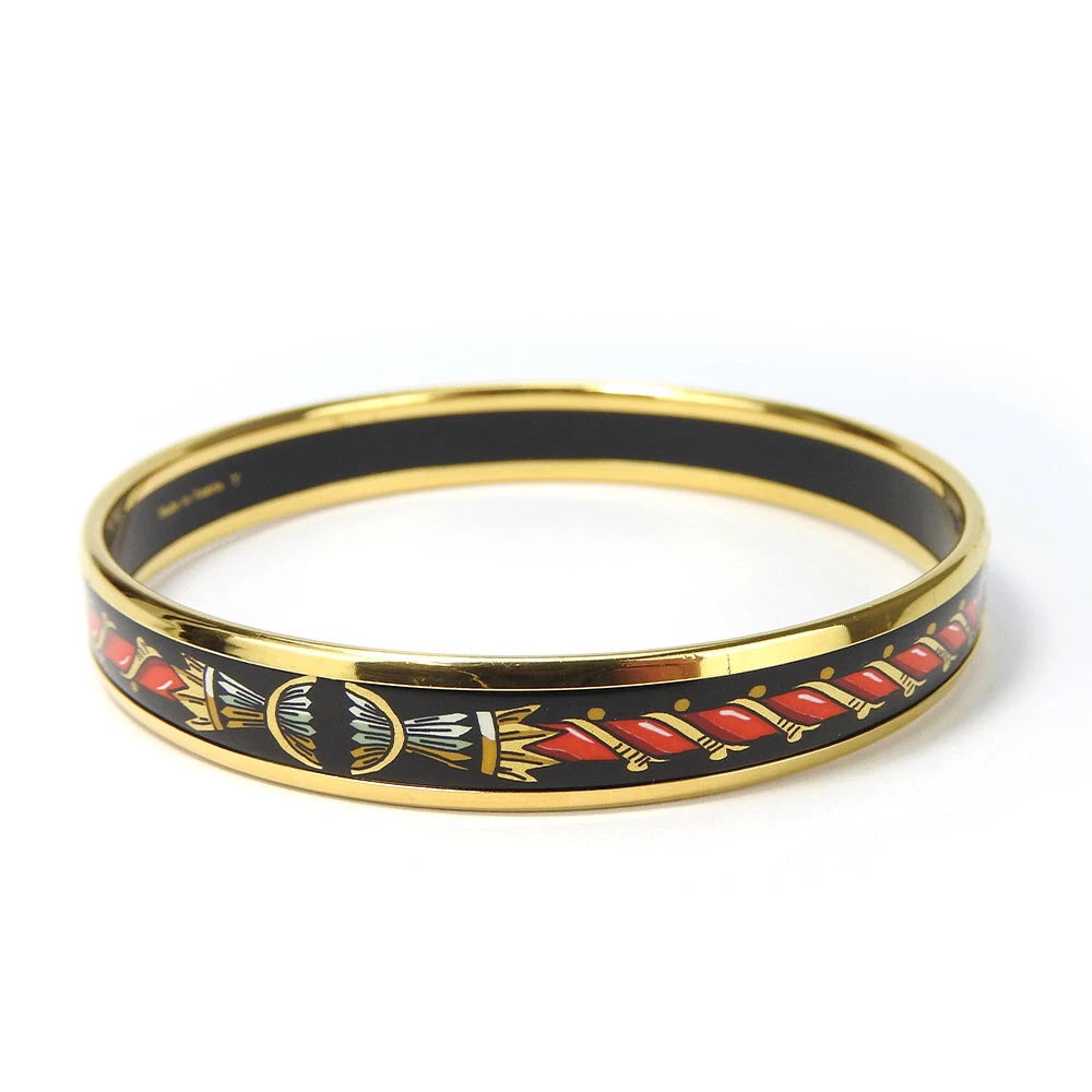 Vintage Hermès Enamel Bangle – Red & Gold Rope Motif