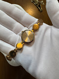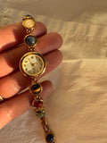A delicate gold-tone bracelet watch adorned with multicolour cabochon stones, giving it a charming, jewellery-like vintage feel. Soft, feminine and unique — the perfect little statement for everyday elegance.