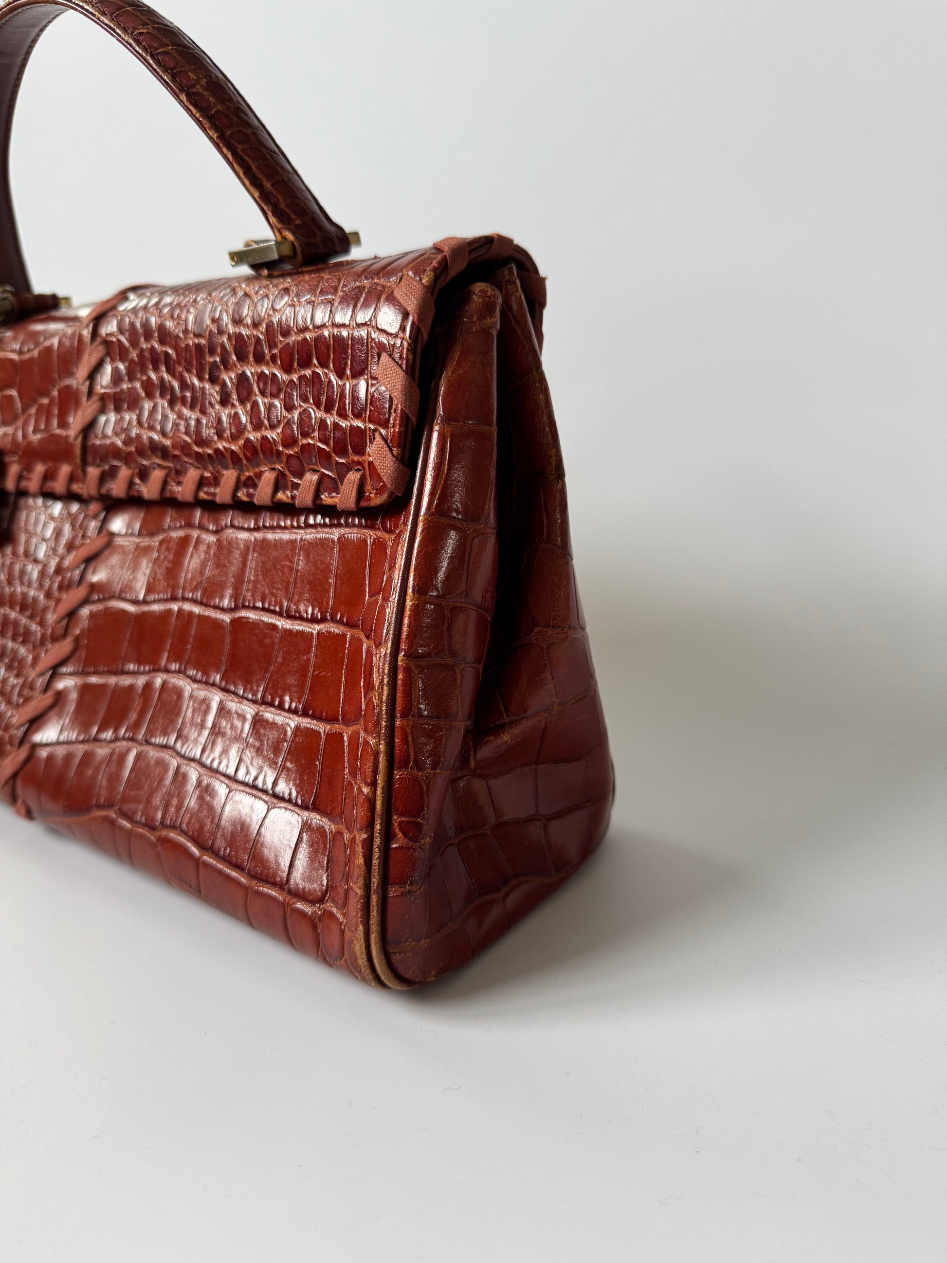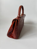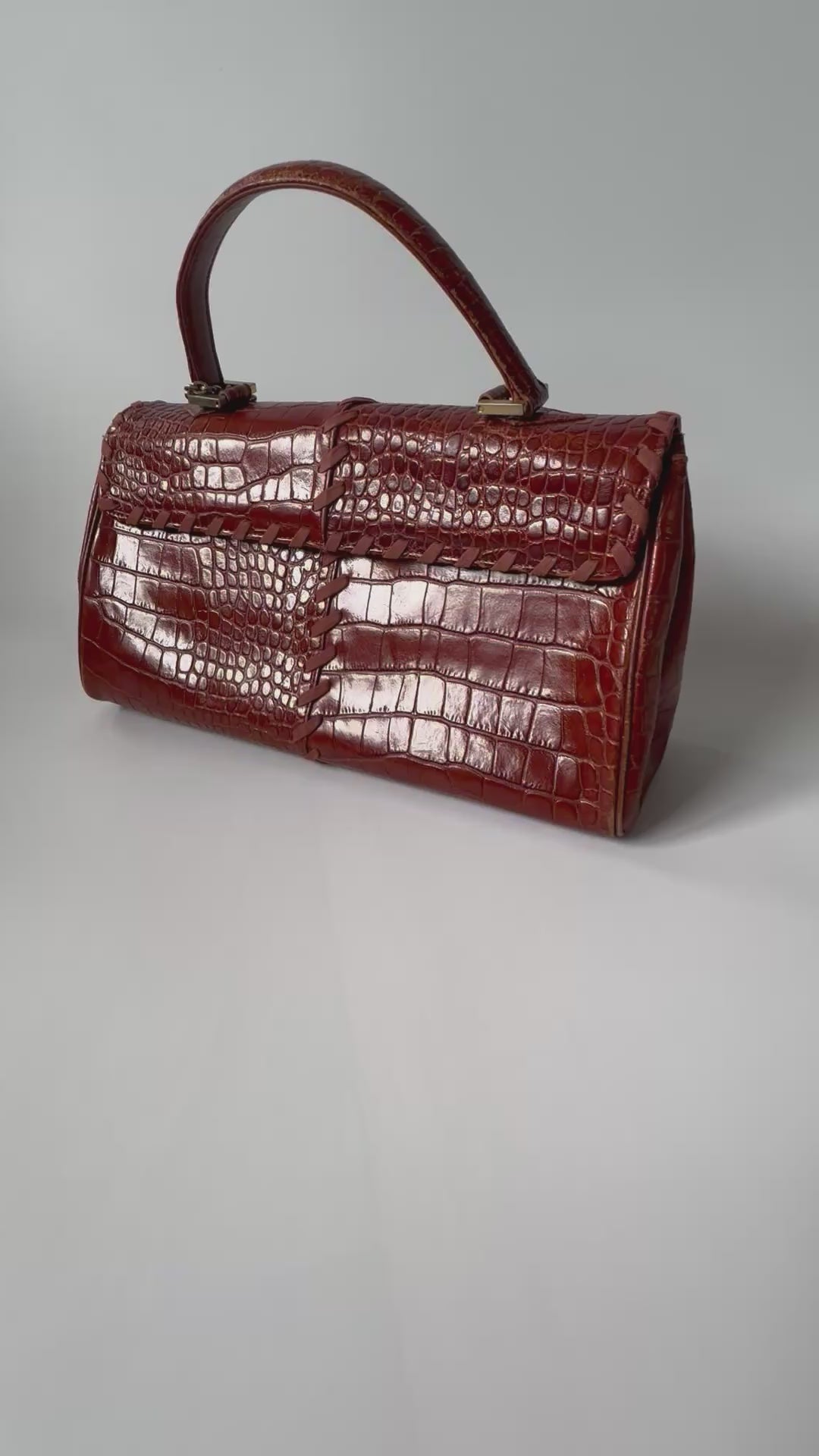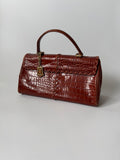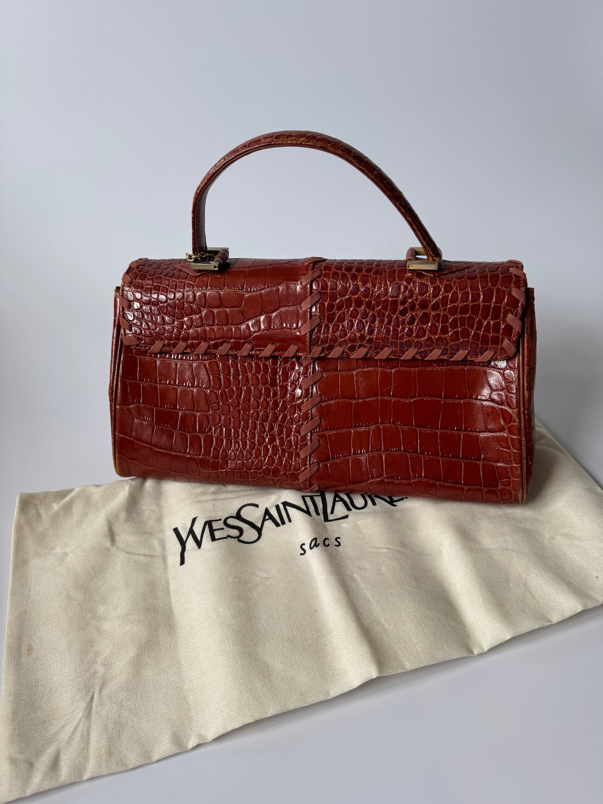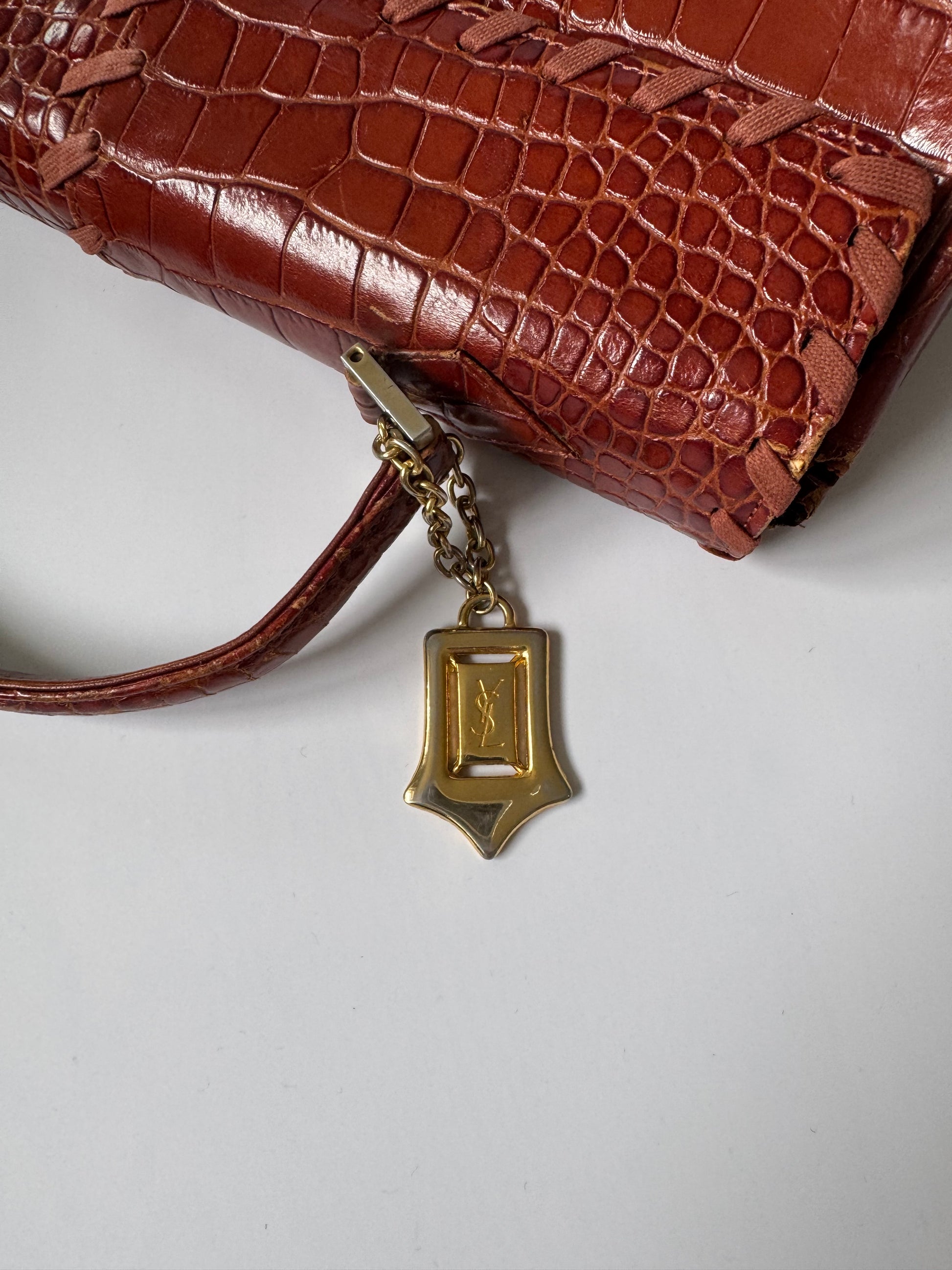 Rare YSL Vintage Burgundy Croc-Embossed Leather Handle Bag (c. 1980s)