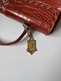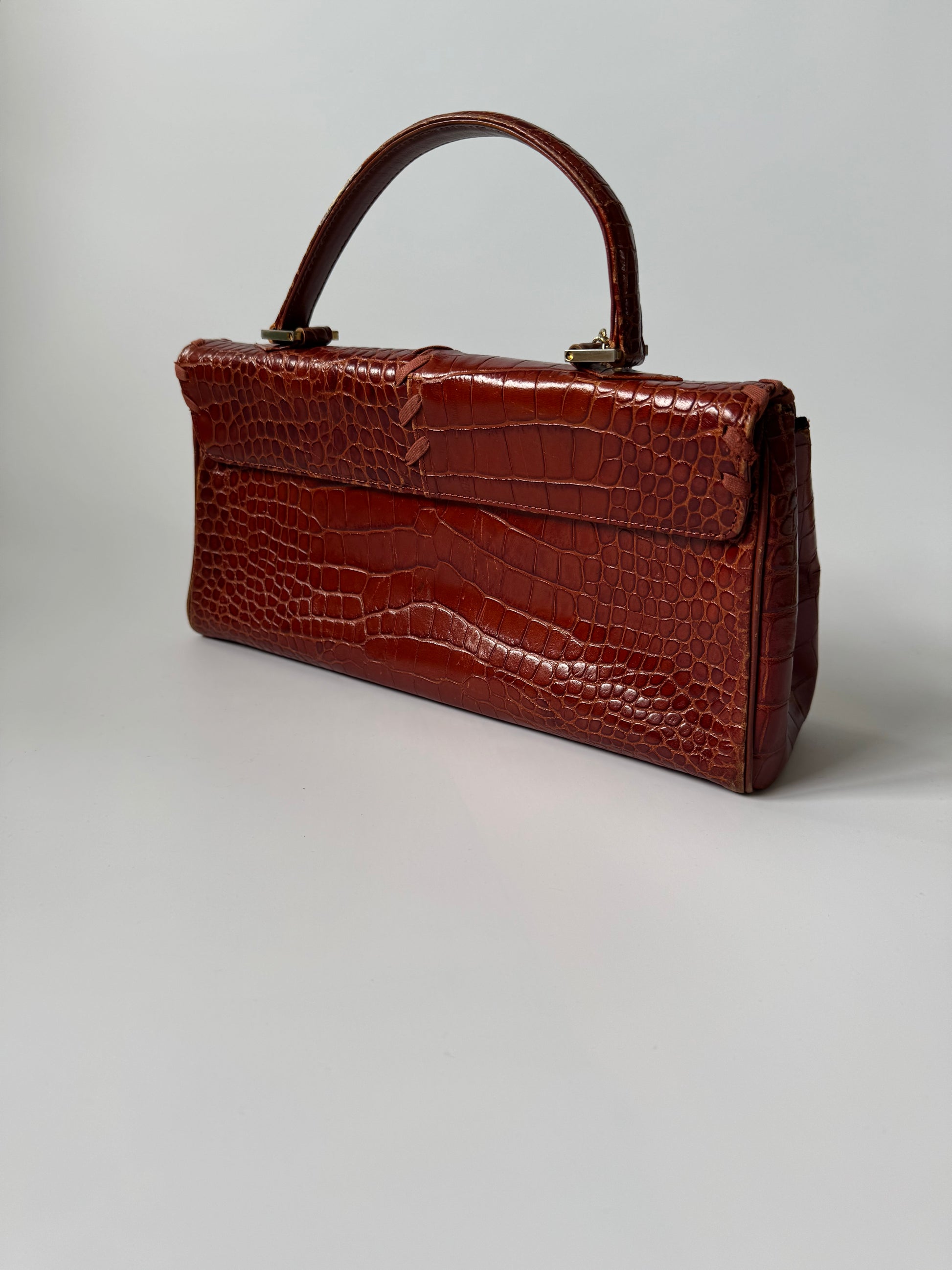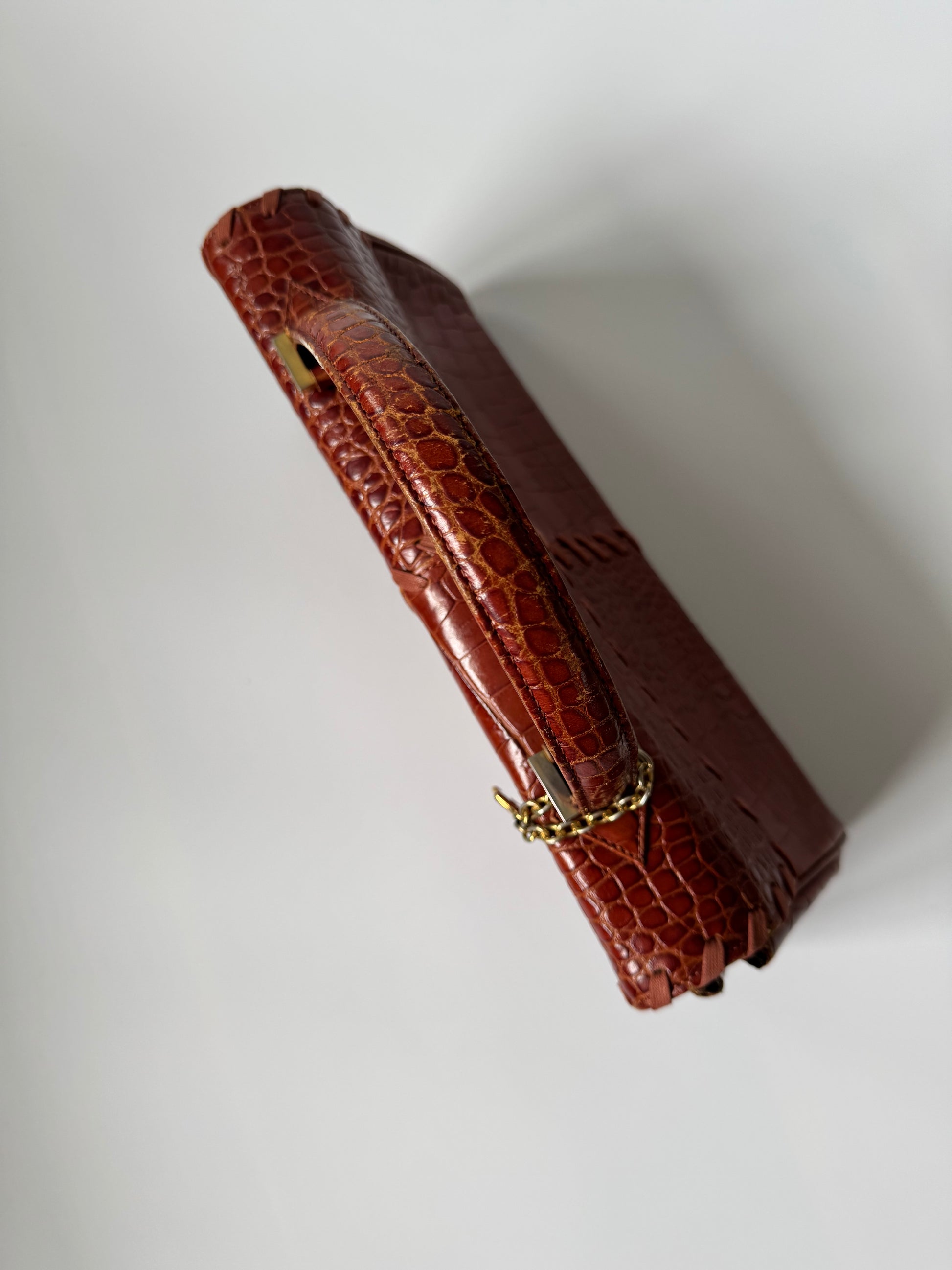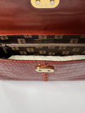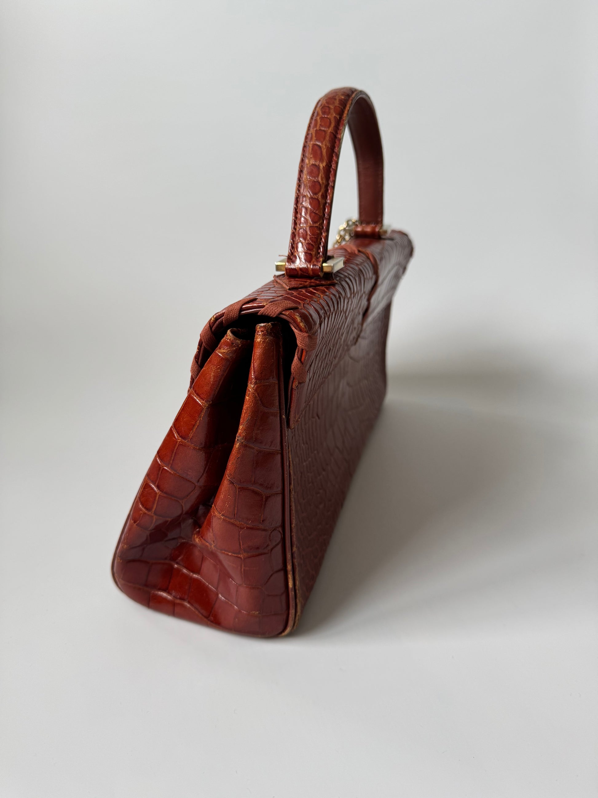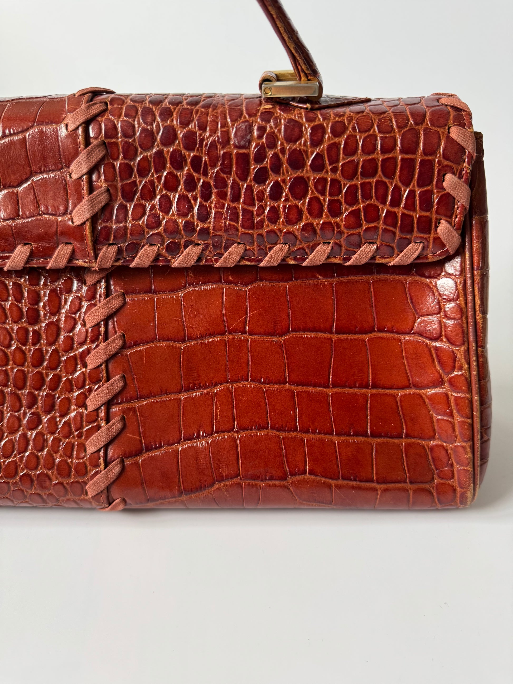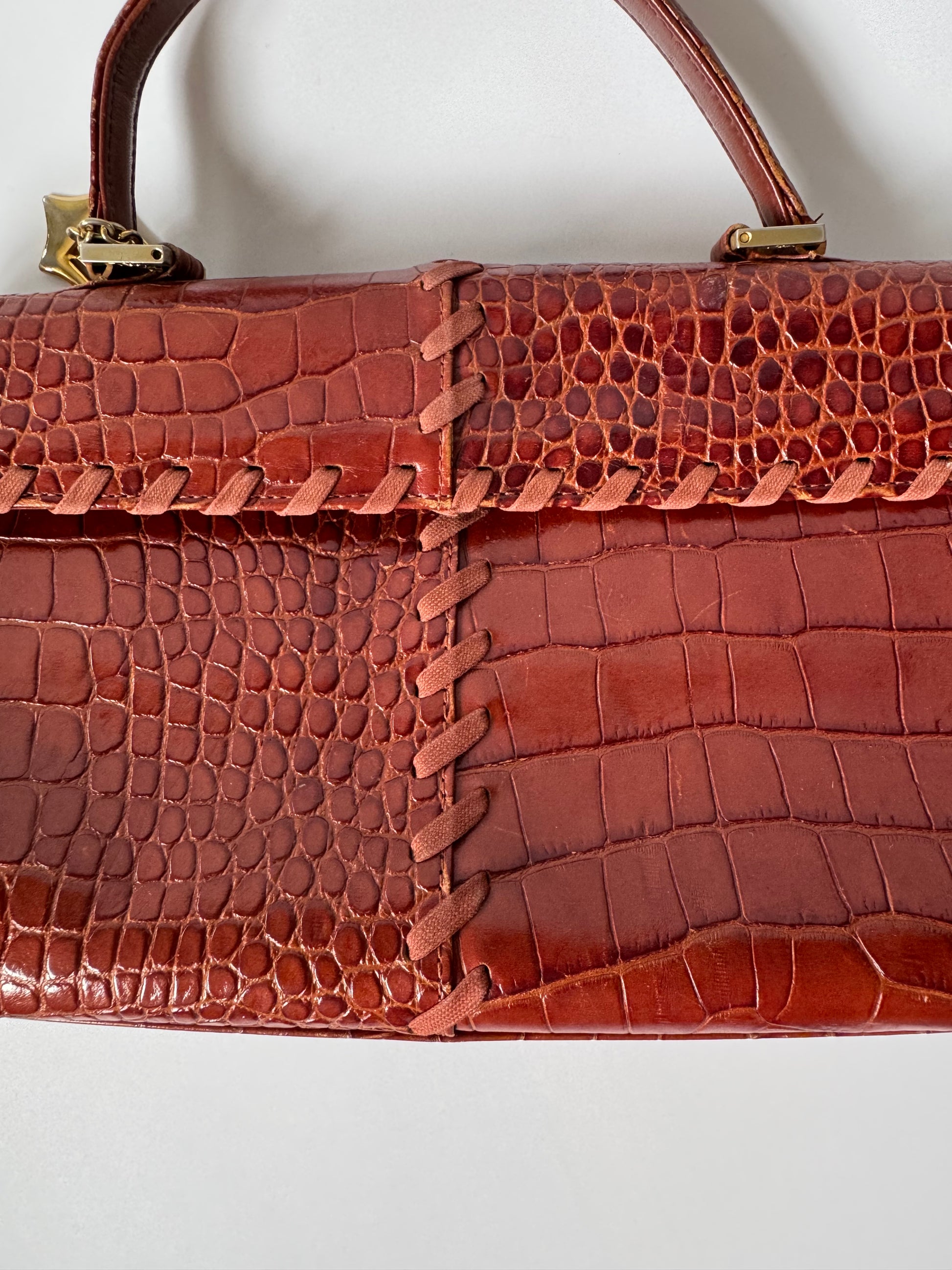 Rare YSL Vintage Burgundy Croc-Embossed Leather Handle Bag (c. 1980s)