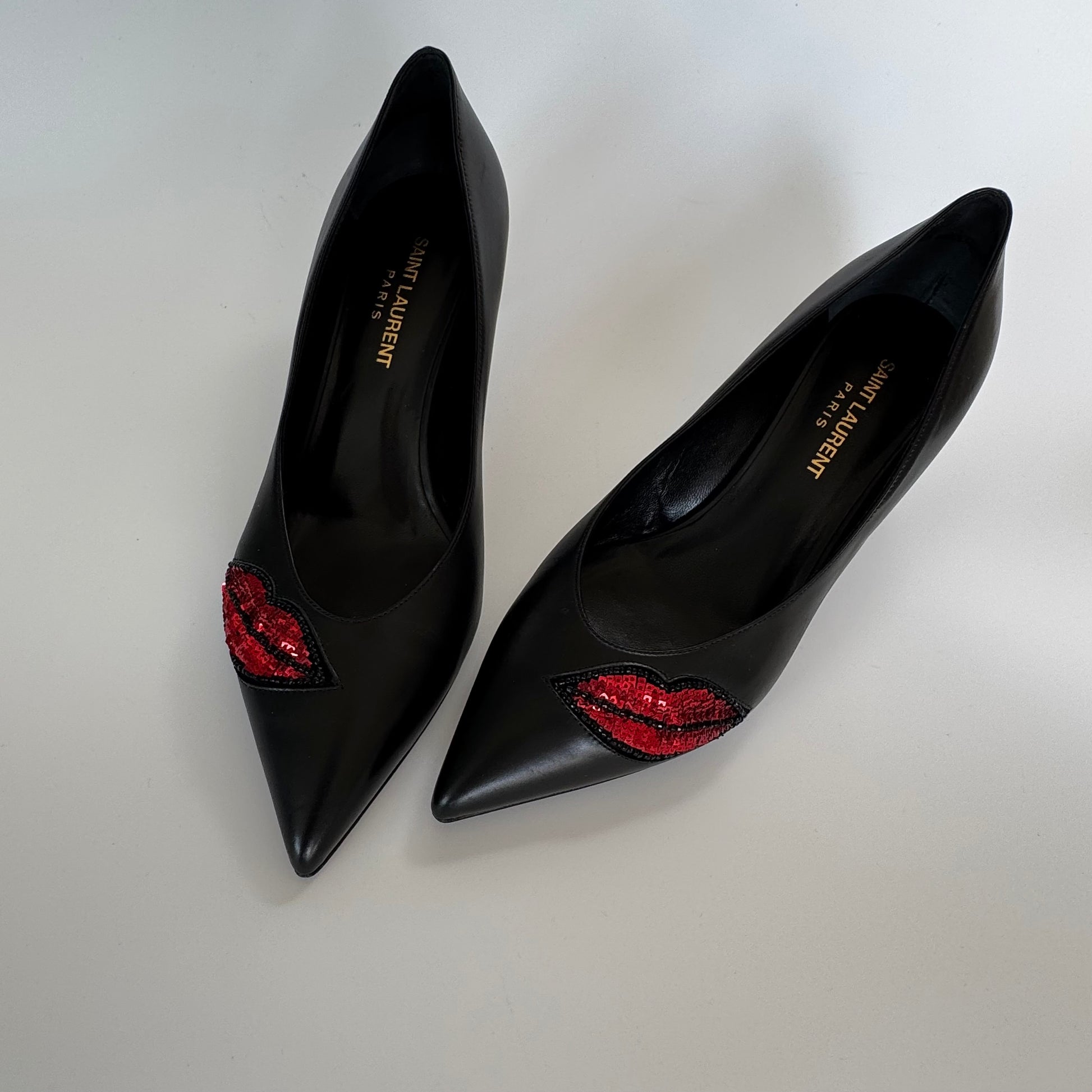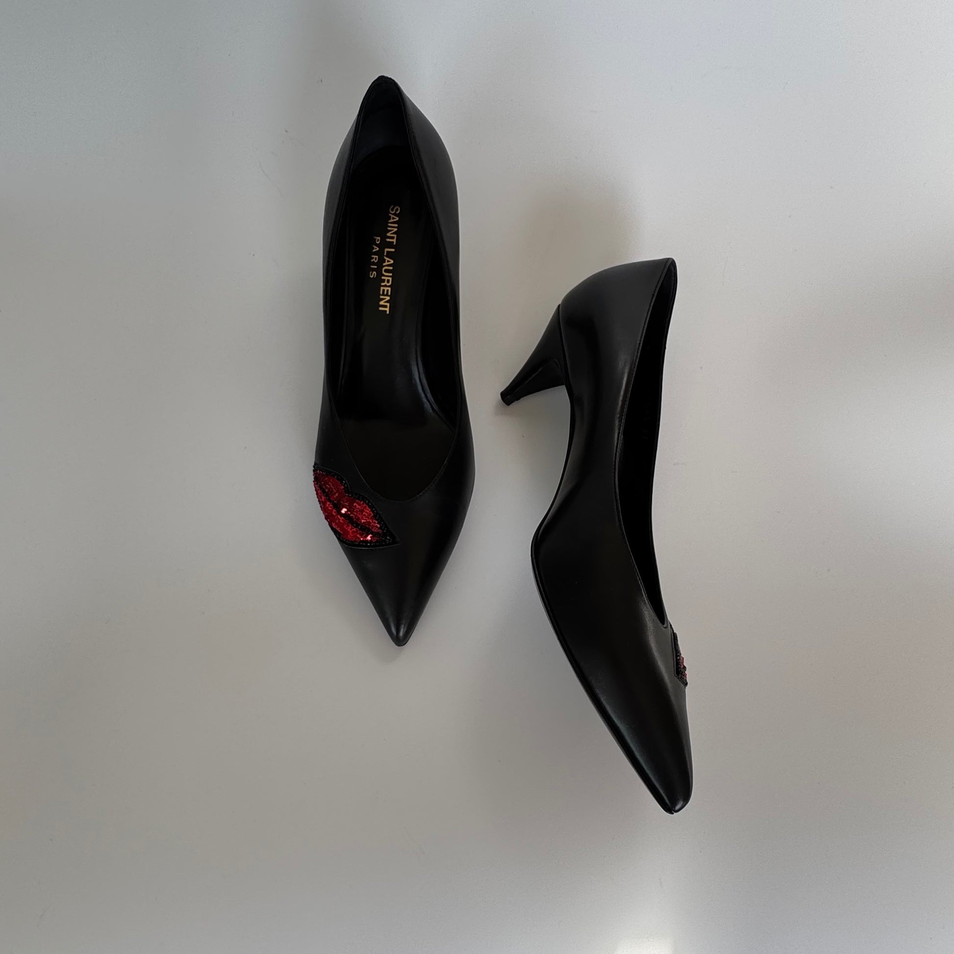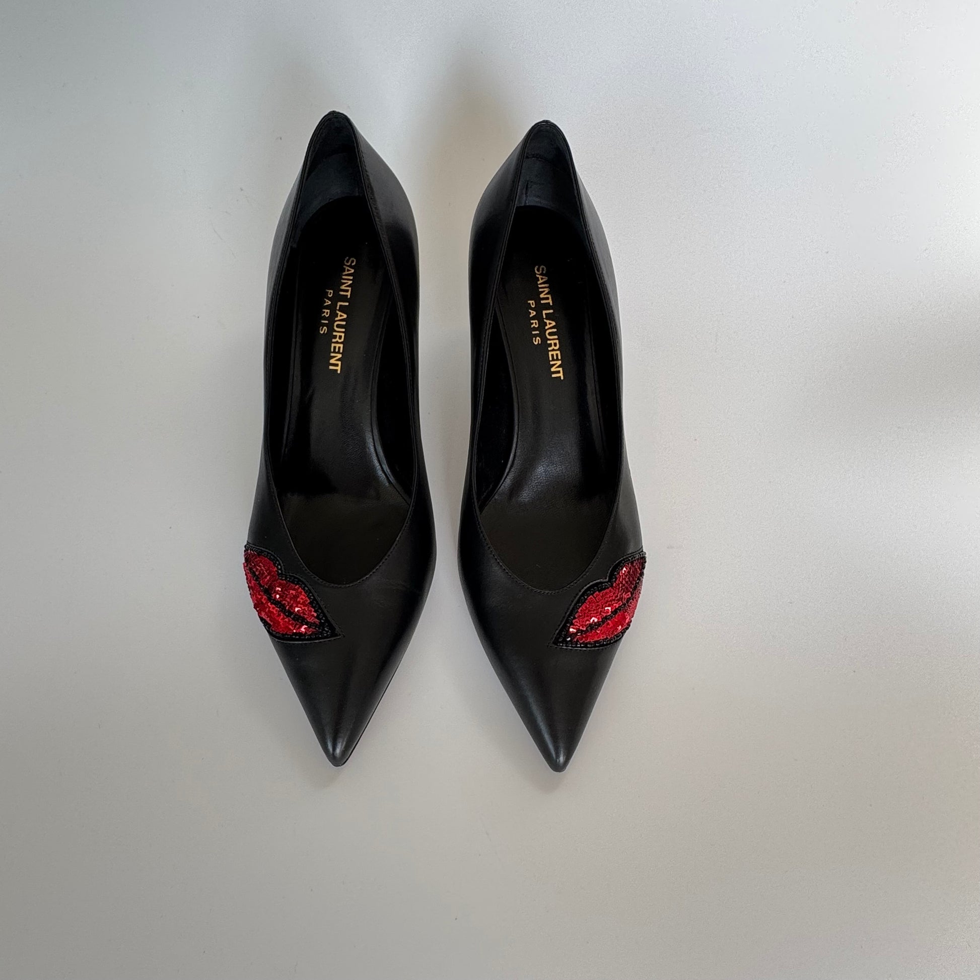 Saint Laurent Black Leather ‘Lips’ Pumps (37)